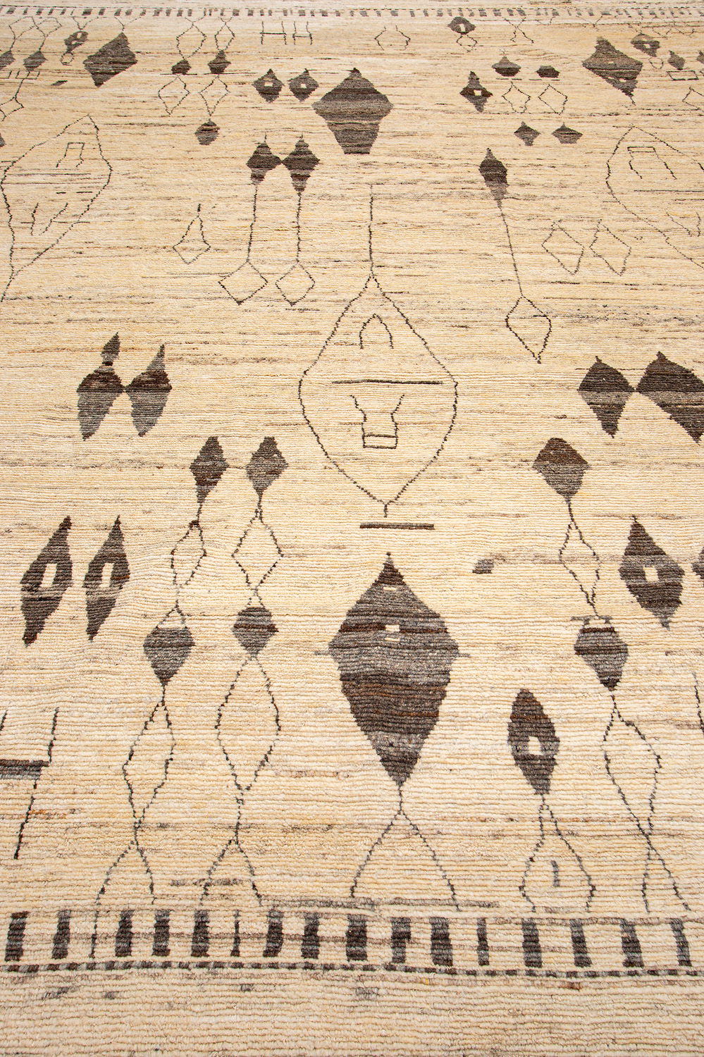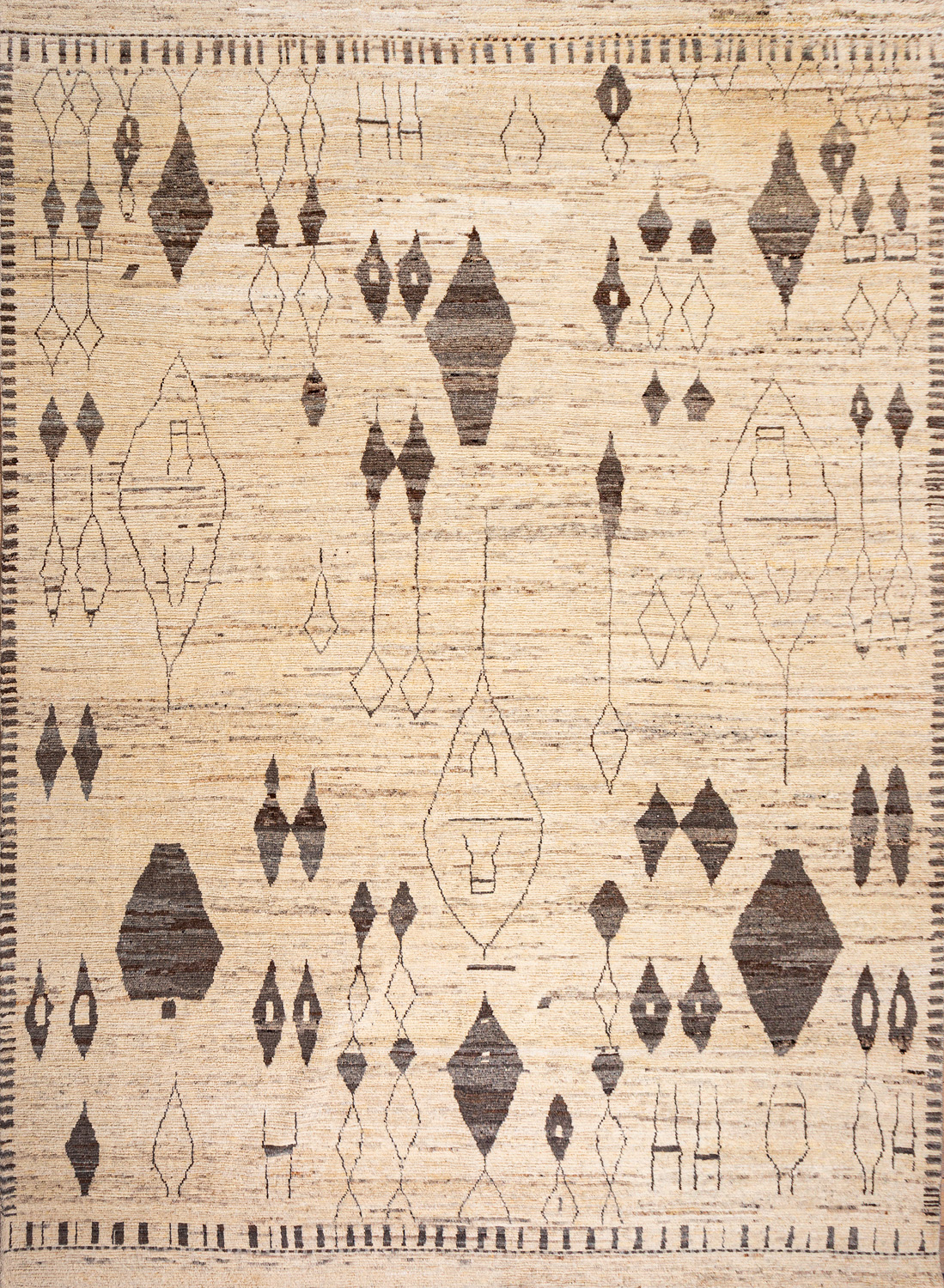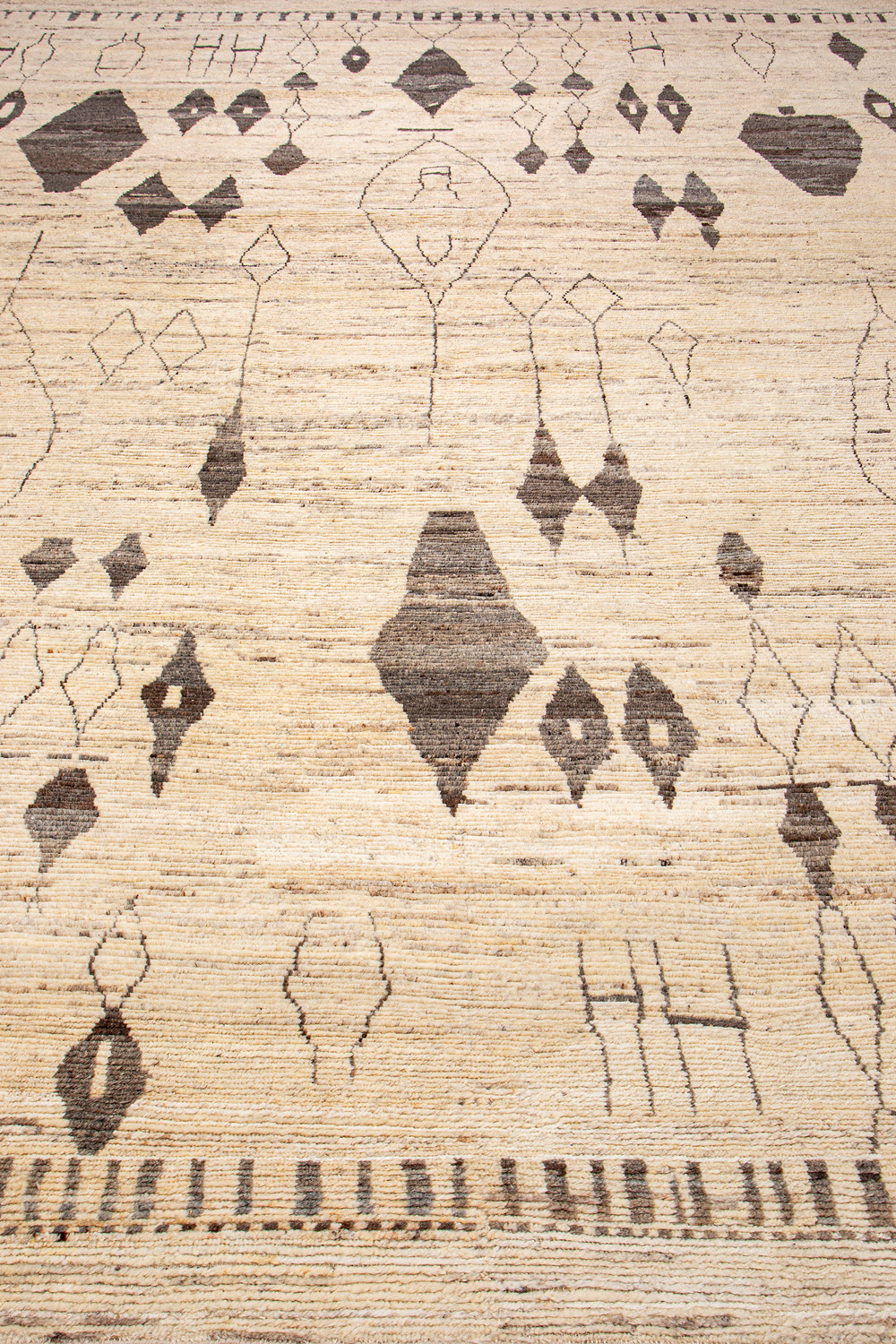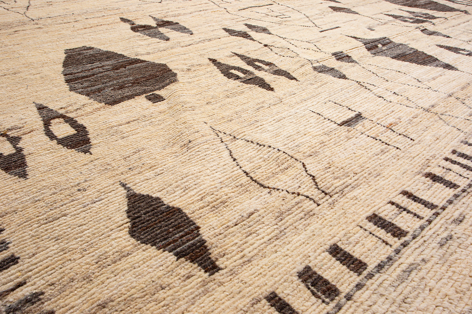 Дизайн ковров напоминает современные полотна художников-абстракционистов и производит столь же яркое и незабываемое впечатление в интерьере. Живописный эффект и необычная фактура зависят от выбора материала: натуральной шерсти, шёлка и от их сочетаний друг с другом. Ковры ткутся вручную в лучших мастерских Индии и Пакистана.