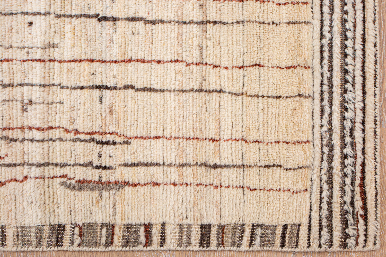 Дизайн ковров напоминает современные полотна художников-абстракционистов и производит столь же яркое и незабываемое впечатление в интерьере. Живописный эффект и необычная фактура зависят от выбора материала: натуральной шерсти, шёлка и от их сочетаний друг с другом. Ковры ткутся вручную в лучших мастерских Индии и Пакистана.