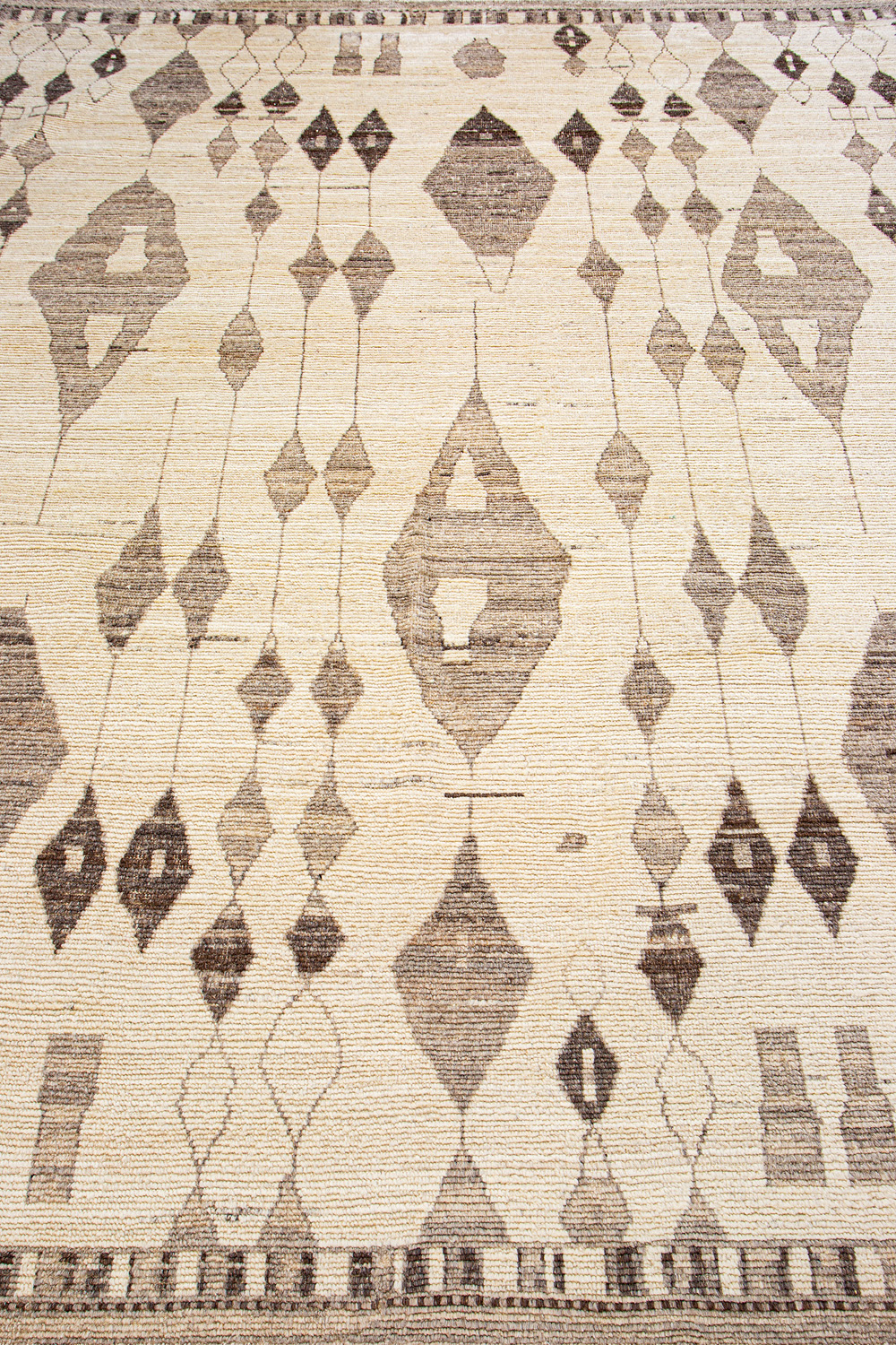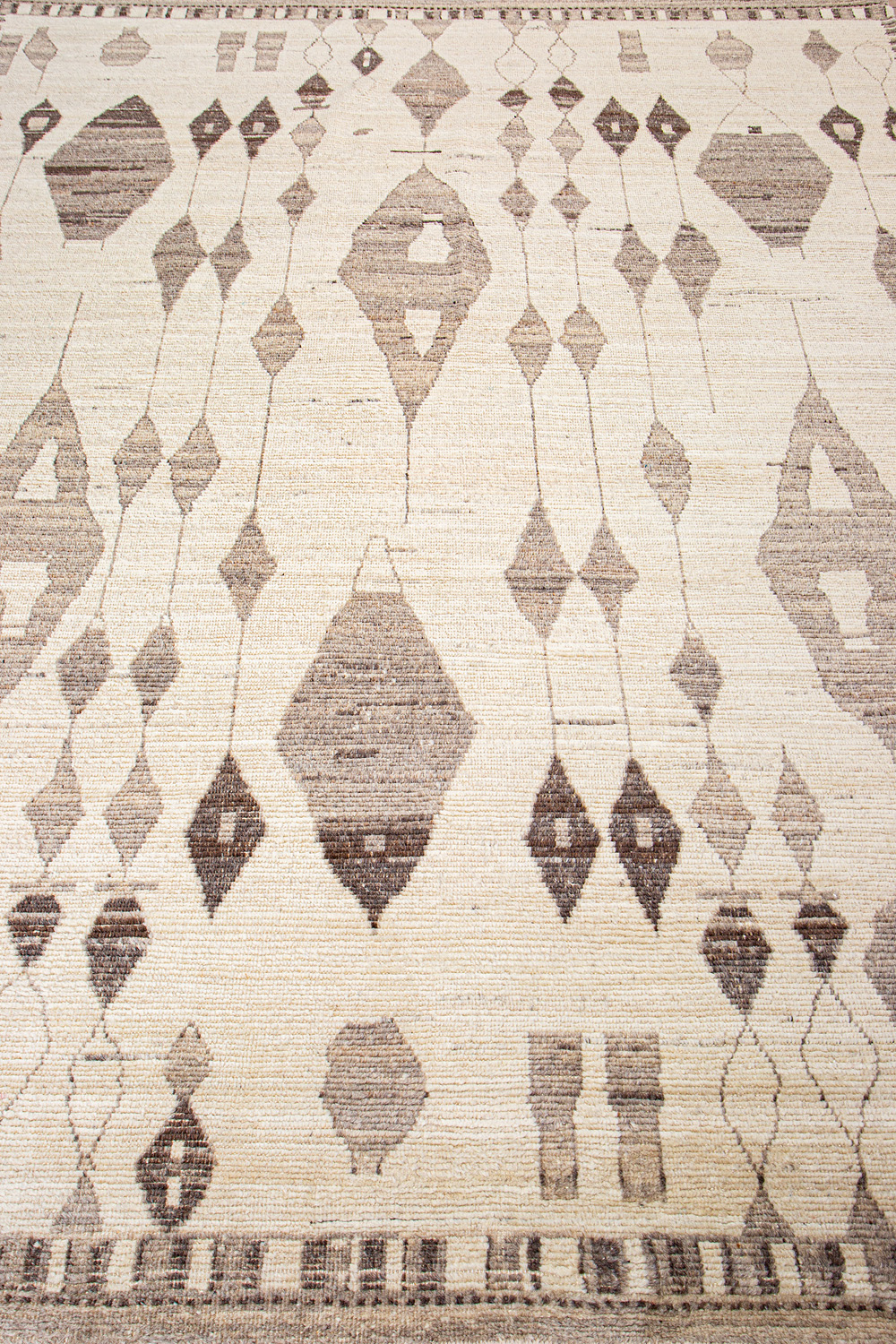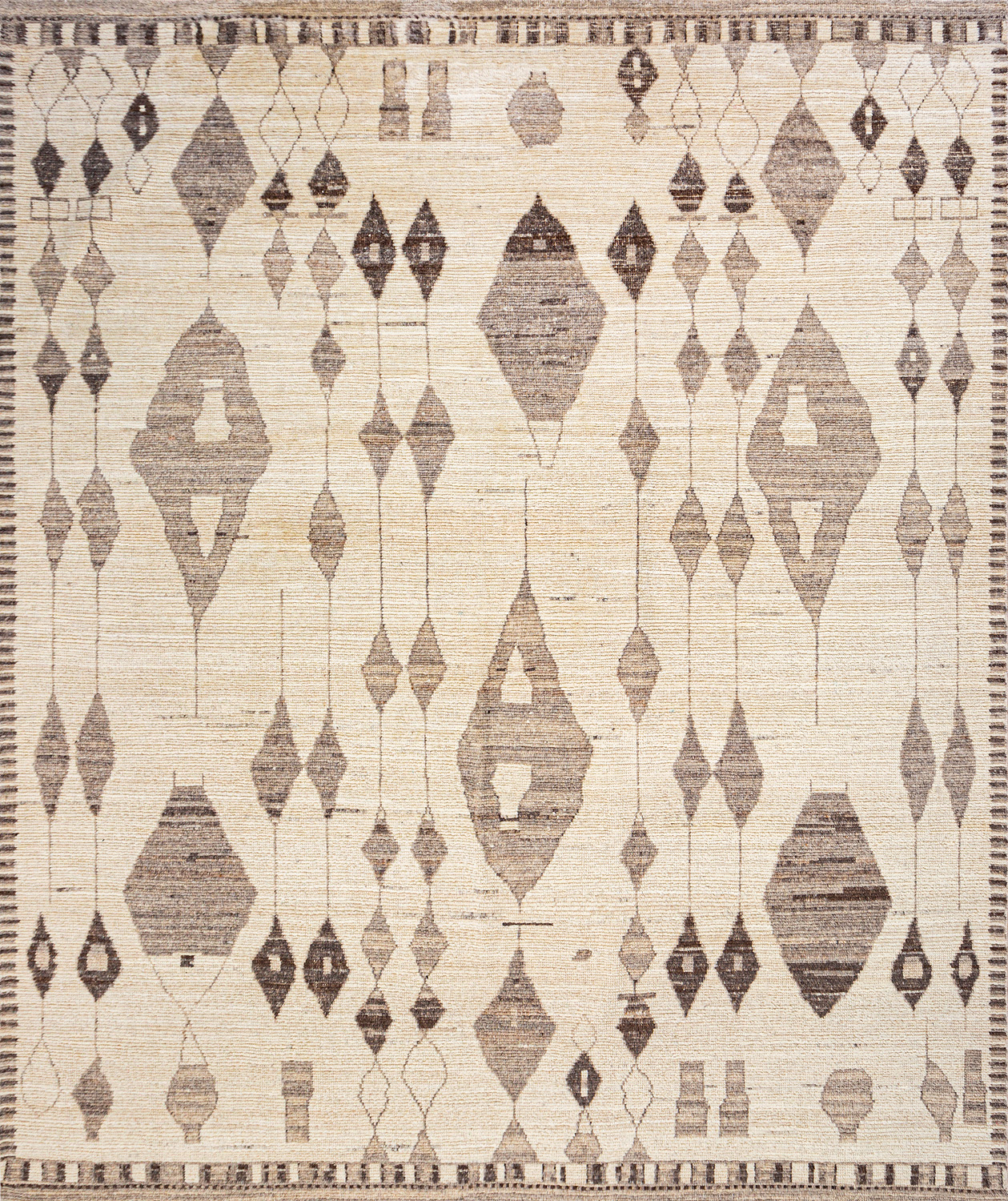 Дизайн ковров напоминает современные полотна художников-абстракционистов и производит столь же яркое и незабываемое впечатление в интерьере. Живописный эффект и необычная фактура зависят от выбора материала: натуральной шерсти, шёлка и от их сочетаний друг с другом. Ковры ткутся вручную в лучших мастерских Индии и Пакистана.