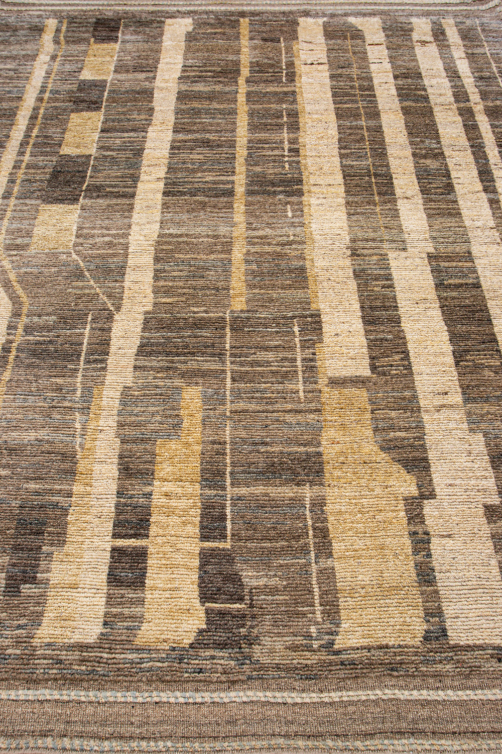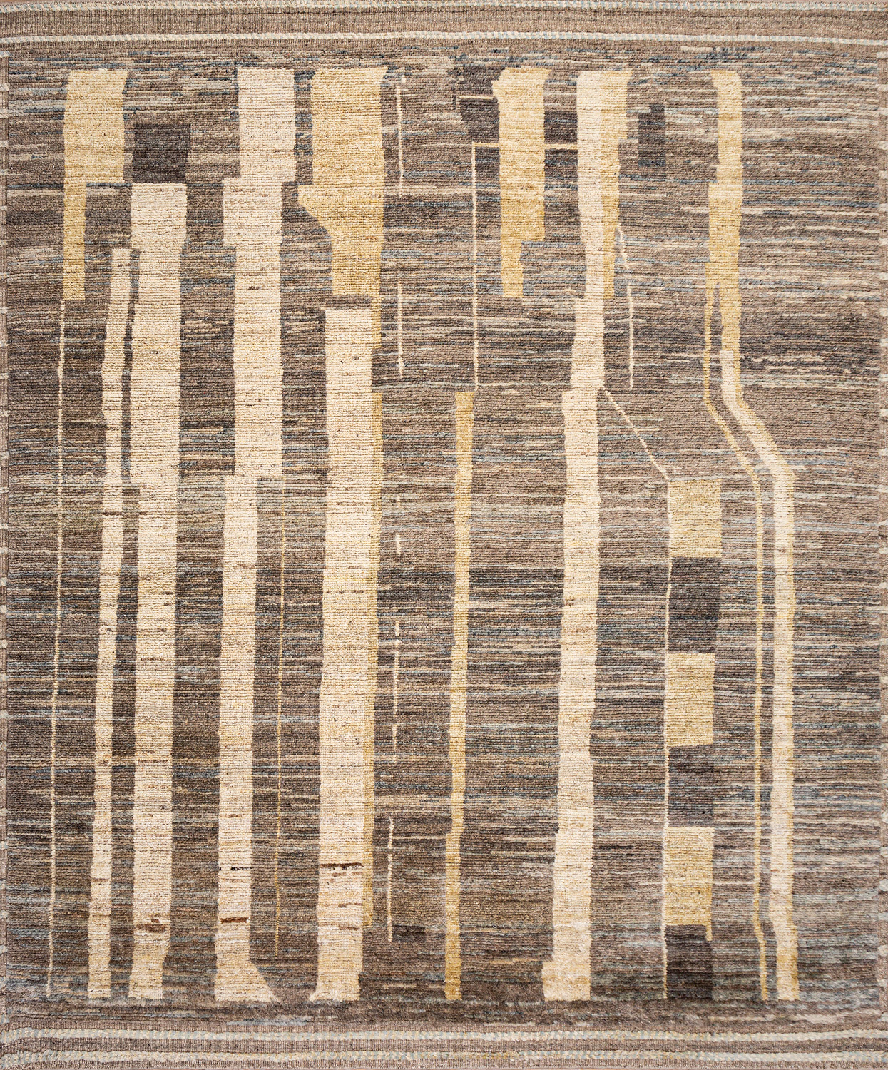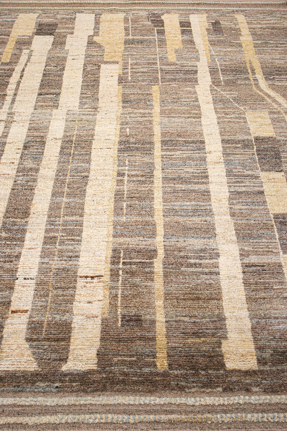 Дизайн ковров напоминает современные полотна художников-абстракционистов и производит столь же яркое и незабываемое впечатление в интерьере. Живописный эффект и необычная фактура зависят от выбора материала: натуральной шерсти, шёлка и от их сочетаний друг с другом. Ковры ткутся вручную в лучших мастерских Индии и Пакистана.