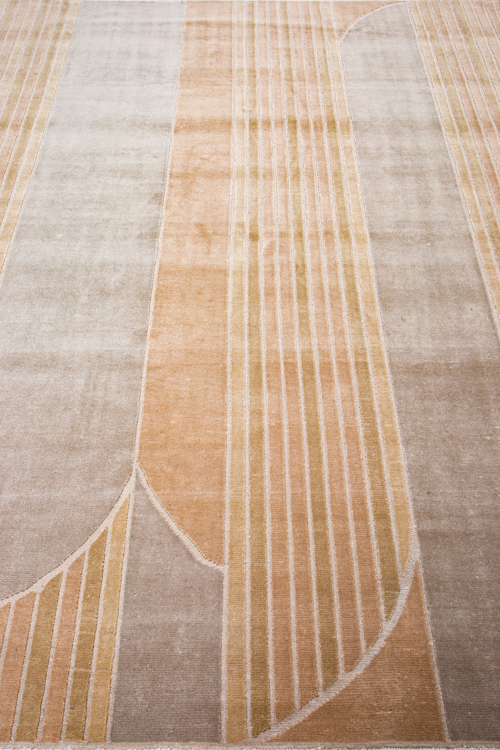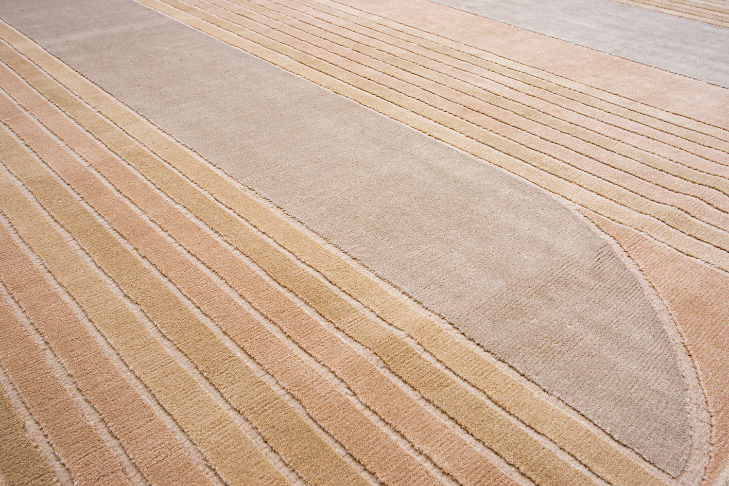 Крупные рисунки в виде линий и фигур на фактурной поверхности ковра превращаются в выразительные композиции. Они акцентируют на себе внимание и добавляют динамики в современный интерьер. Комбинации разных фигур и повторяющийся орнамент задают ритмическую основу пространству, привносят в него оригинальные оптические иллюзии.