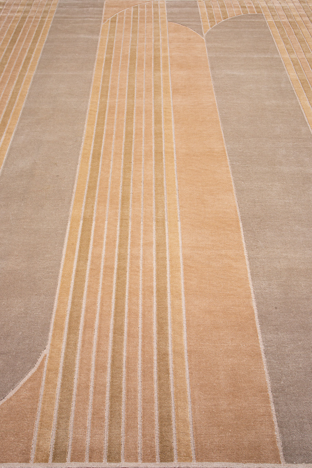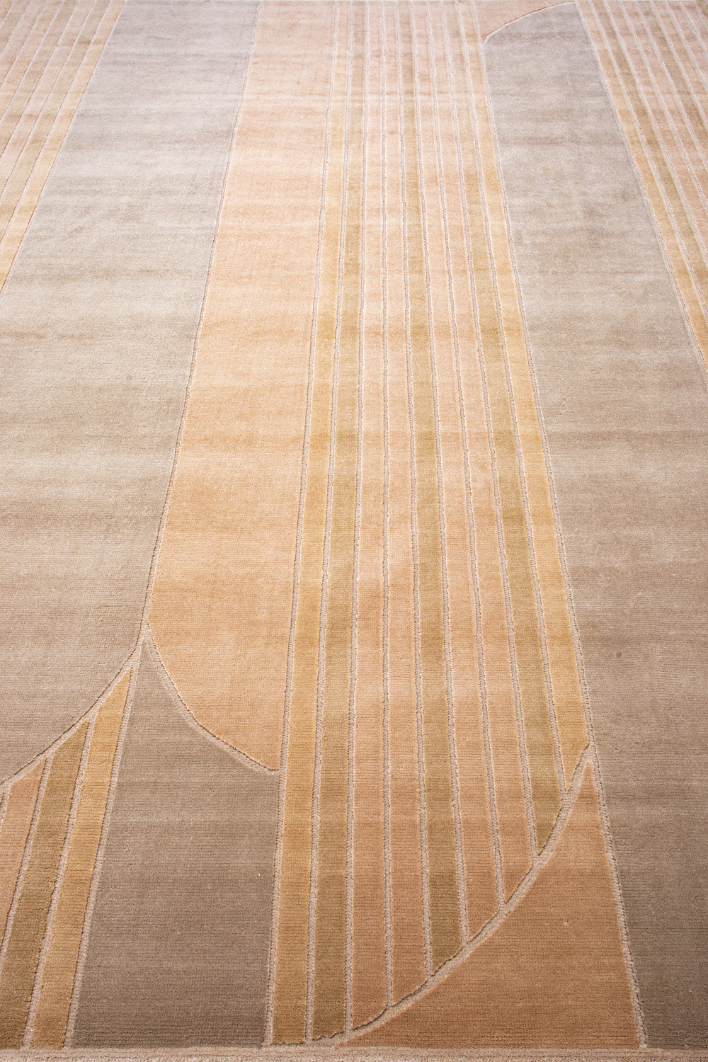 Крупные рисунки в виде линий и фигур на фактурной поверхности ковра превращаются в выразительные композиции. Они акцентируют на себе внимание и добавляют динамики в современный интерьер. Комбинации разных фигур и повторяющийся орнамент задают ритмическую основу пространству, привносят в него оригинальные оптические иллюзии.