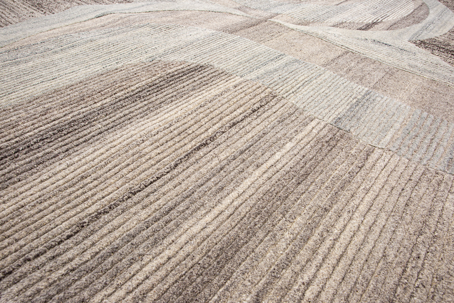 Крупные рисунки в виде линий и фигур на фактурной поверхности ковра превращаются в выразительные композиции. Они акцентируют на себе внимание и добавляют динамики в современный интерьер. Комбинации разных фигур и повторяющийся орнамент задают ритмическую основу пространству, привносят в него оригинальные оптические иллюзии.