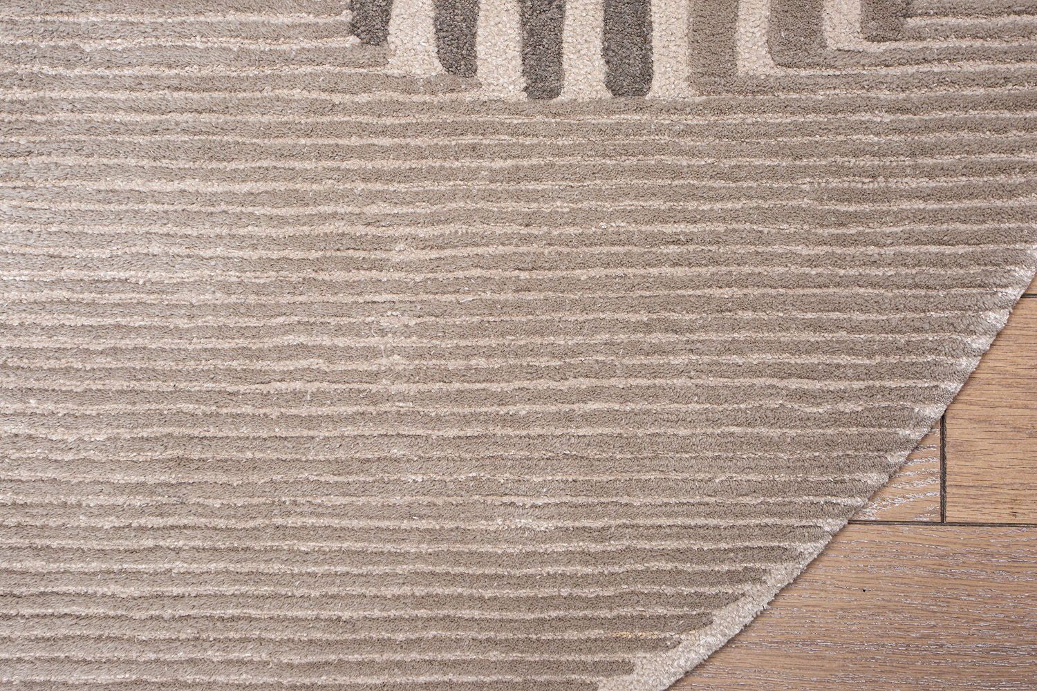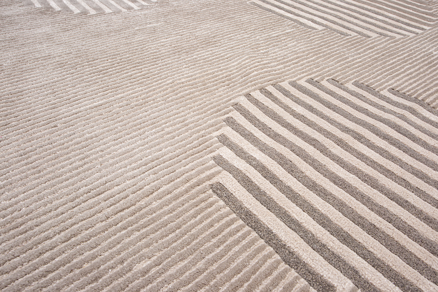 Крупные рисунки в виде линий и фигур на фактурной поверхности ковра превращаются в выразительные композиции. Они акцентируют на себе внимание и добавляют динамики в современный интерьер. Комбинации разных фигур и повторяющийся орнамент задают ритмическую основу пространству, привносят в него оригинальные оптические иллюзии.