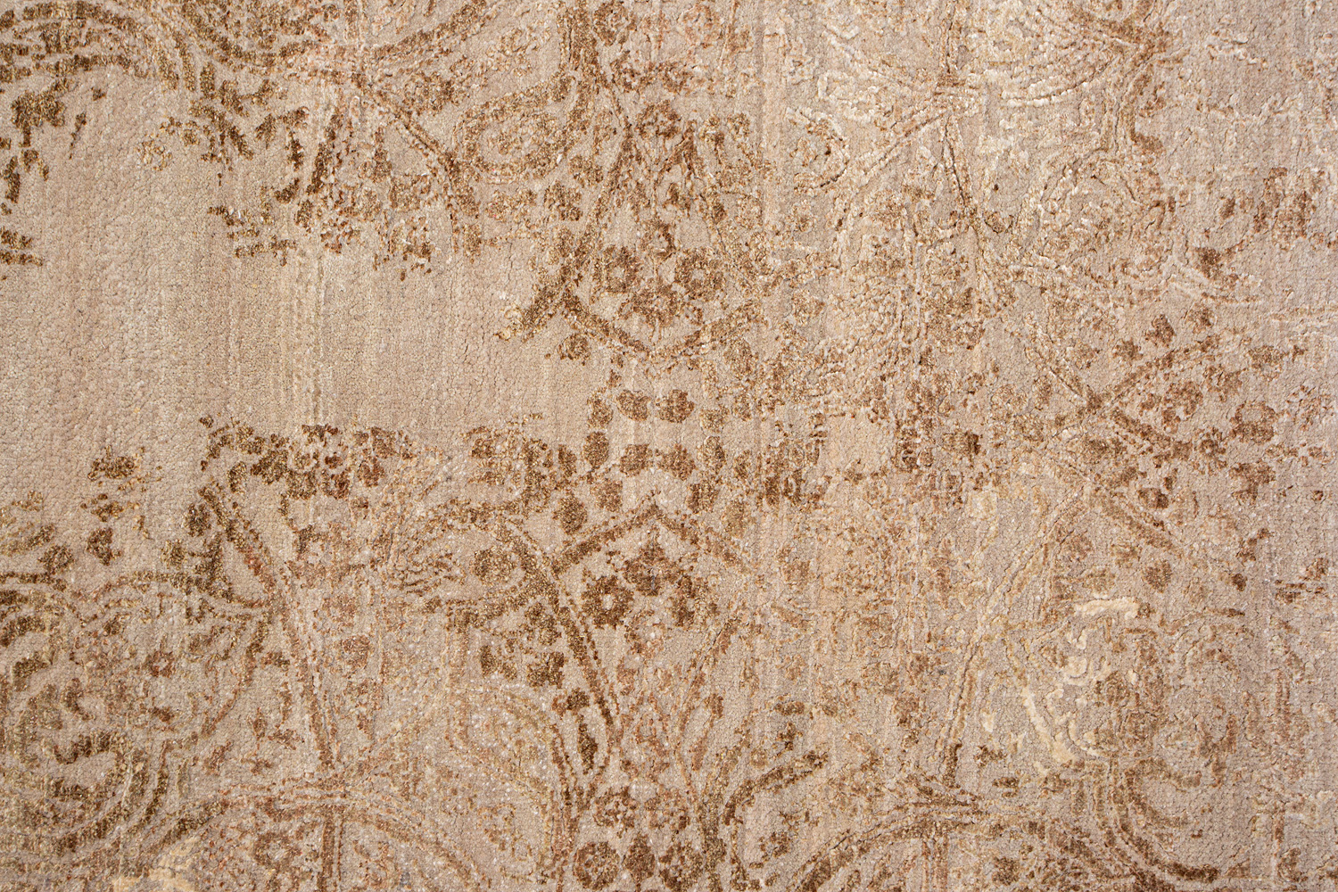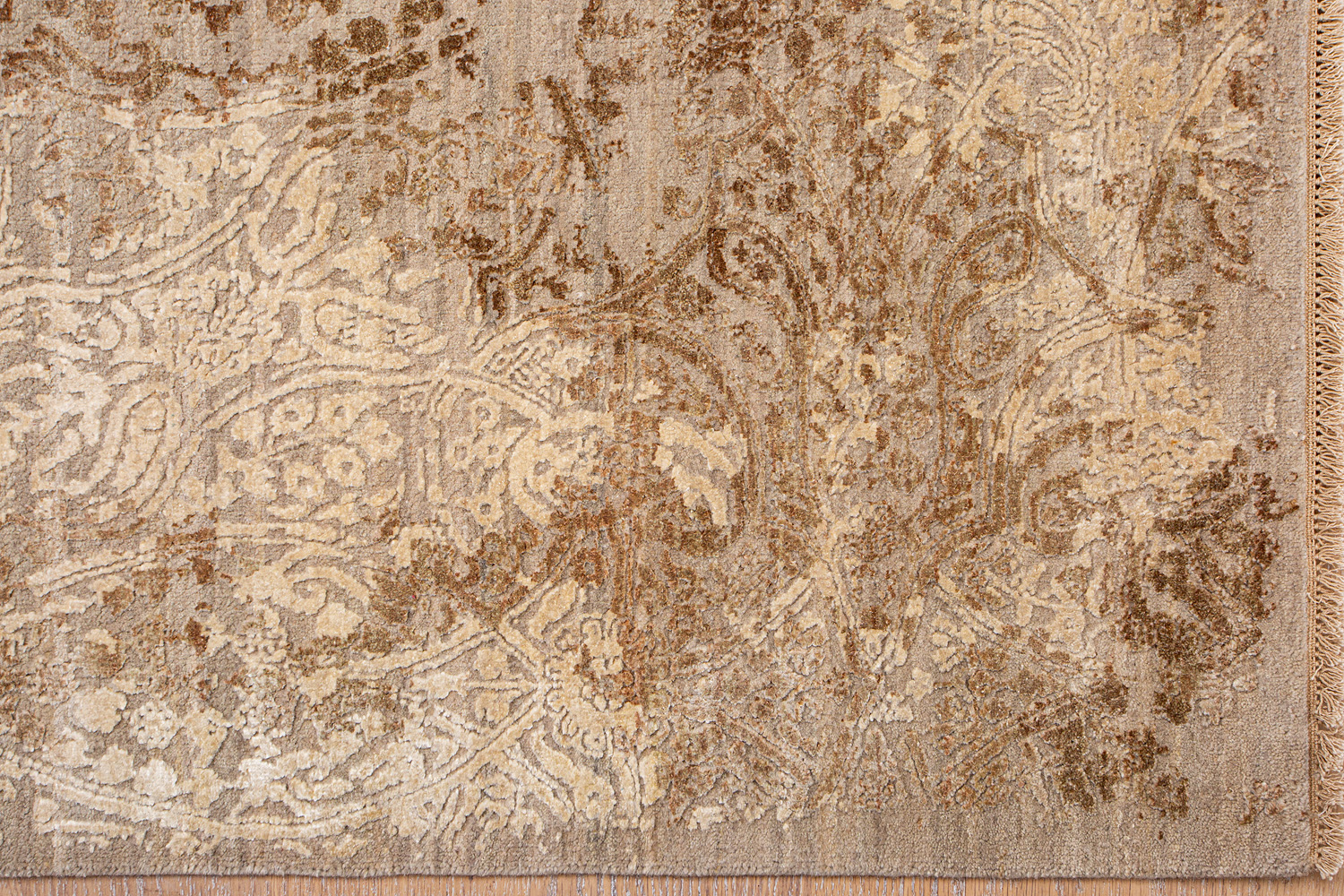 Время и природа — два главных стержня. Впечатление такое, что краски словно стёрлись, а если они и сохраняют яркость, то рисунок сохранился не весь, какие‑то фрагменты утрачены — такова типология этого столь актуального сегодня ковра ручной работы из коллекции illusion.