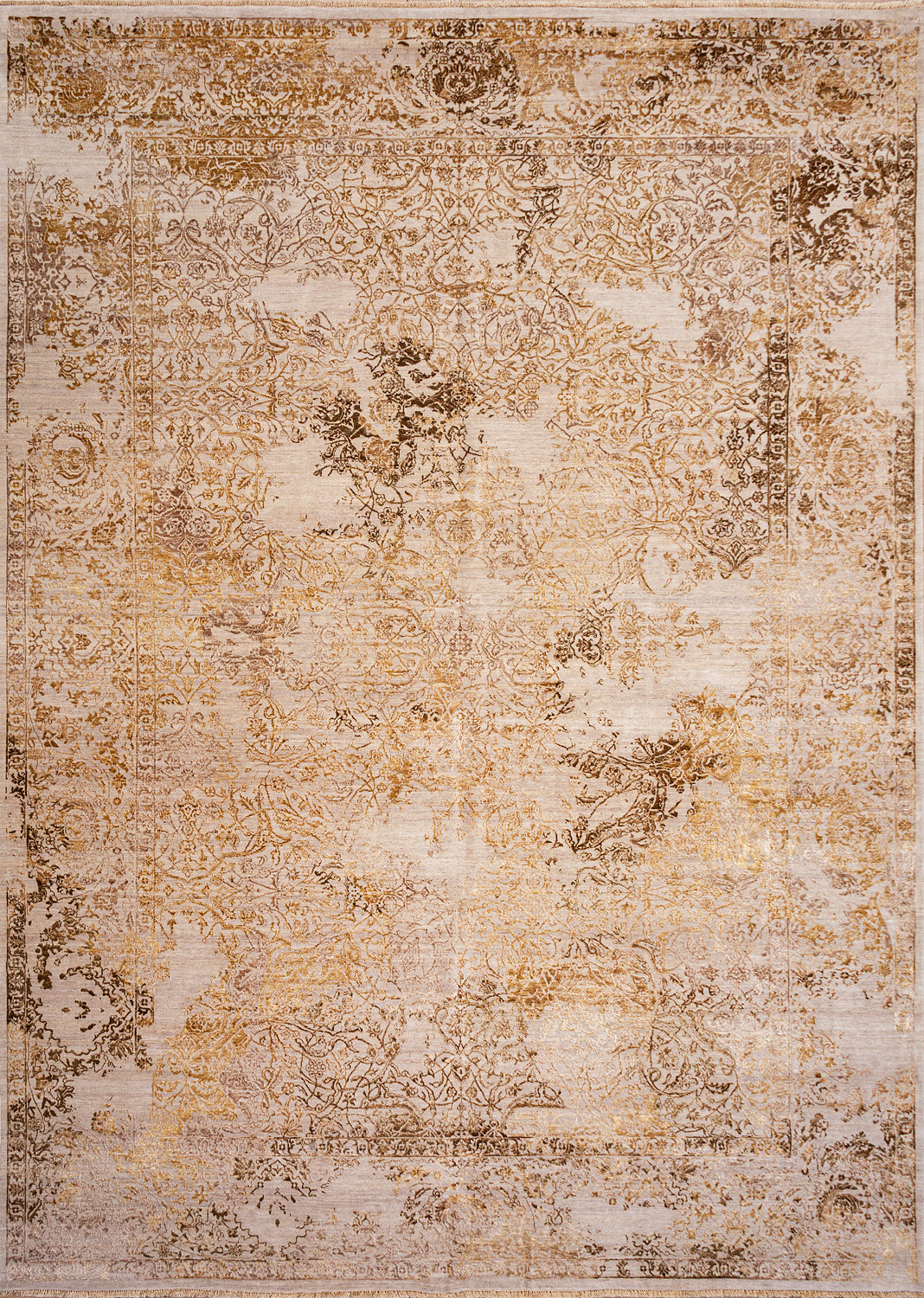 Время и природа — два главных стержня. Впечатление такое, что краски словно стёрлись, а если они и сохраняют яркость, то рисунок сохранился не весь, какие‑то фрагменты утрачены — такова типология этого столь актуального сегодня ковра ручной работы из коллекции illusion.