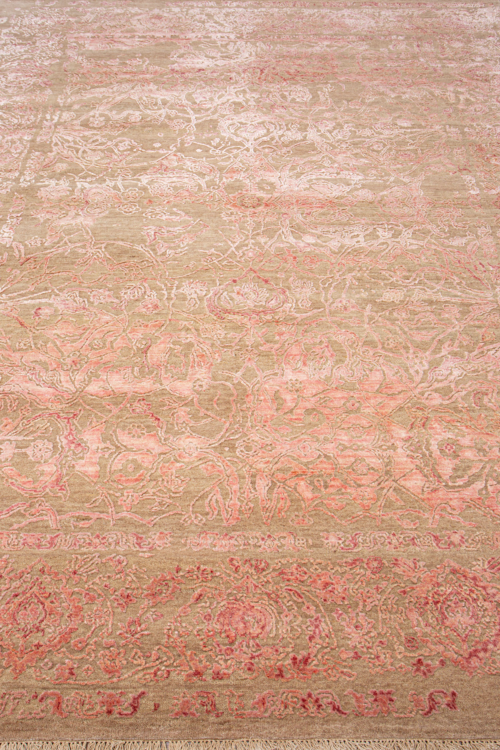 Родина этих ковров Индия. Чтобы создать такое произведение искусства у мастеров уходит от одного года до двух лет. Плотность ковров, в зависимости от размера, составляет от 250 000 до 400 000 узлов на квадратный метр.