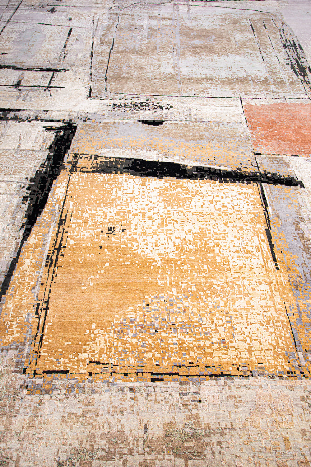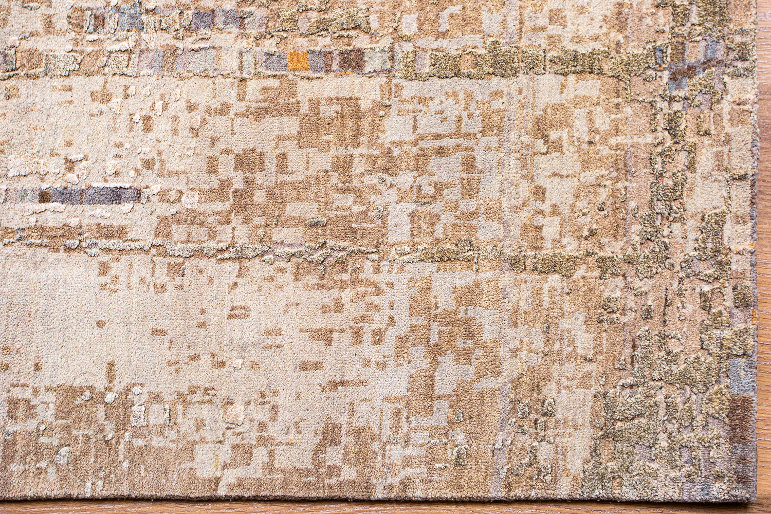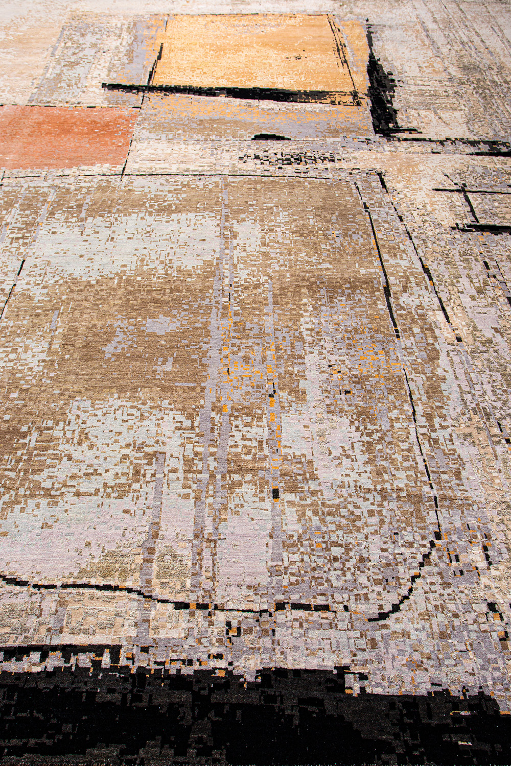 Дизайн ковров напоминает современные полотна художников-абстракционистов и производит столь же яркое и незабываемое впечатление в интерьере. Живописный эффект и необычная фактура зависят от выбора материала: натуральной шерсти, шёлка и от их сочетаний друг с другом. Ковры ткутся вручную в лучших мастерских Индии и Пакистана.