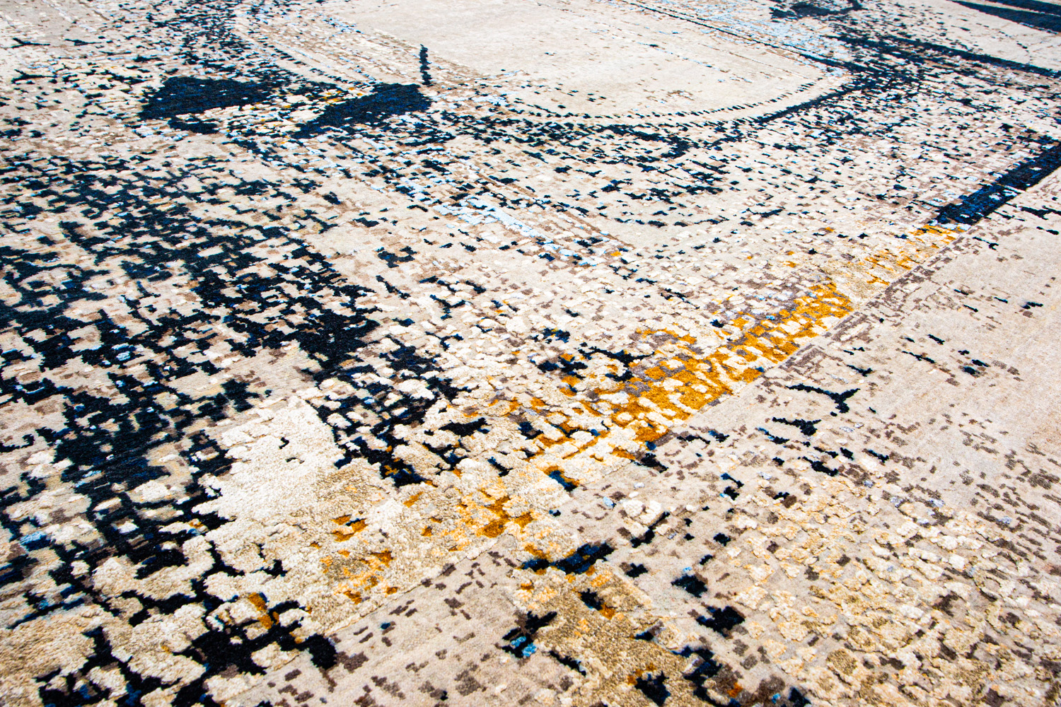 Дизайн ковров напоминает современные полотна художников-абстракционистов и производит столь же яркое и незабываемое впечатление в интерьере. Живописный эффект и необычная фактура зависят от выбора материала: натуральной шерсти, шёлка и от их сочетаний друг с другом. Ковры ткутся вручную в лучших мастерских Индии и Пакистана.