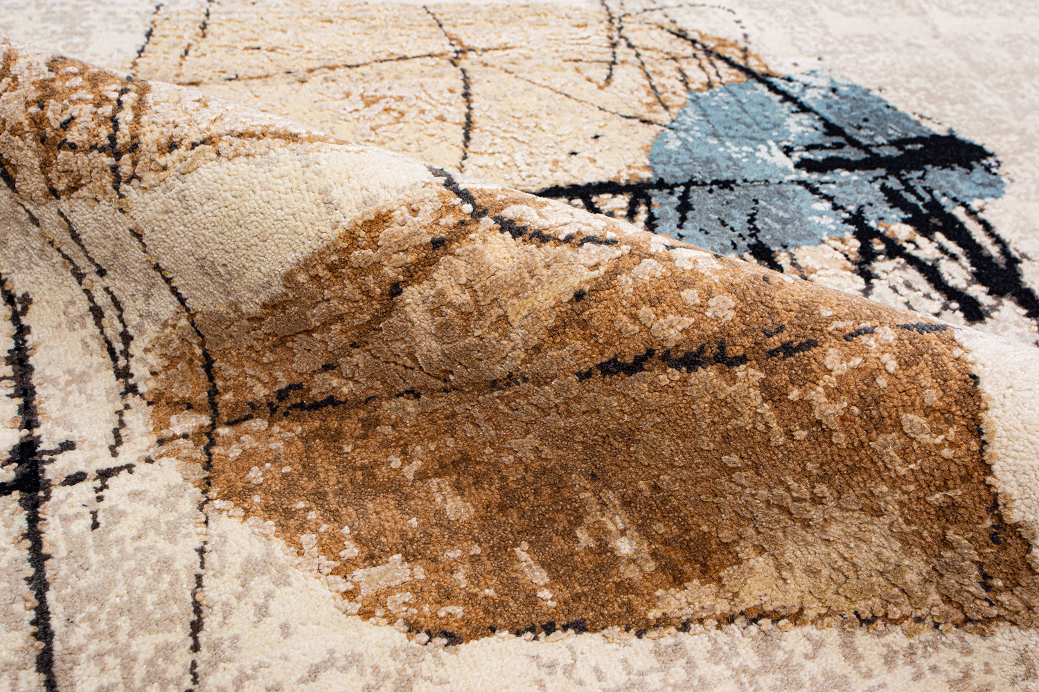 Дизайн ковров напоминает современные полотна художников-абстракционистов и производит столь же яркое и незабываемое впечатление в интерьере. Живописный эффект и необычная фактура зависят от выбора материала: натуральной шерсти, шёлка и от их сочетаний друг с другом. Ковры ткутся вручную в лучших мастерских Индии и Пакистана.