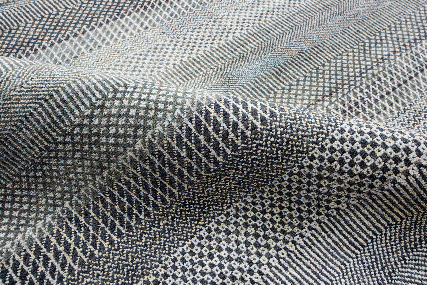 Дизайн ковров напоминает современные полотна художников-абстракционистов и производит столь же яркое и незабываемое впечатление в интерьере. Живописный эффект и необычная фактура зависят от выбора материала: натуральной шерсти, шёлка и от их сочетаний друг с другом. Ковры ткутся вручную в лучших мастерских Индии и Пакистана.