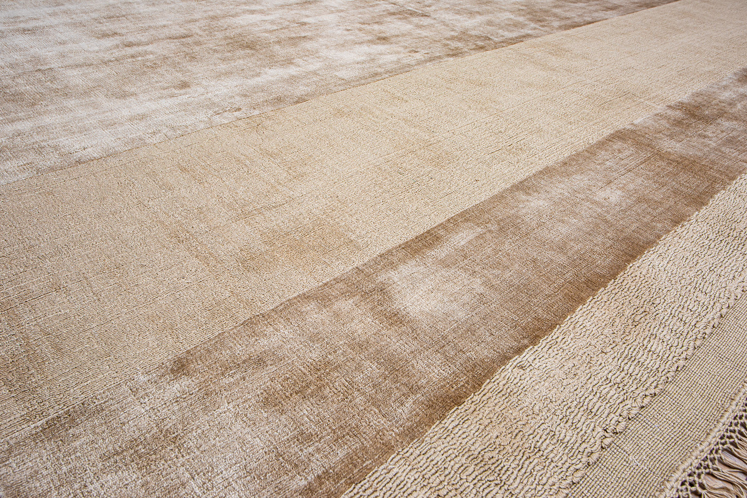 Идеальная база для интерьера — коллекция ковров Mono. Это однотонные ковры самых разных оттенков — от молочно-белых до угольно-черных. Они создаются преимущественно из шерсти и арт-шелка, и благодаря световым бликам на поверхности, обладают волшебным эффектом вибрирующего цвета.