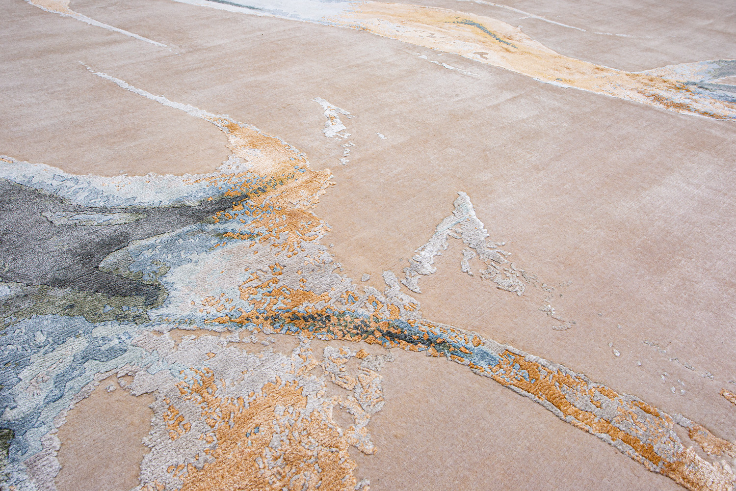 Дизайн ковров напоминает современные полотна художников-абстракционистов и производит столь же яркое и незабываемое впечатление в интерьере. Живописный эффект и необычная фактура зависят от выбора материала: натуральной шерсти, шёлка и от их сочетаний друг с другом. Ковры ткутся вручную в лучших мастерских Индии и Пакистана.