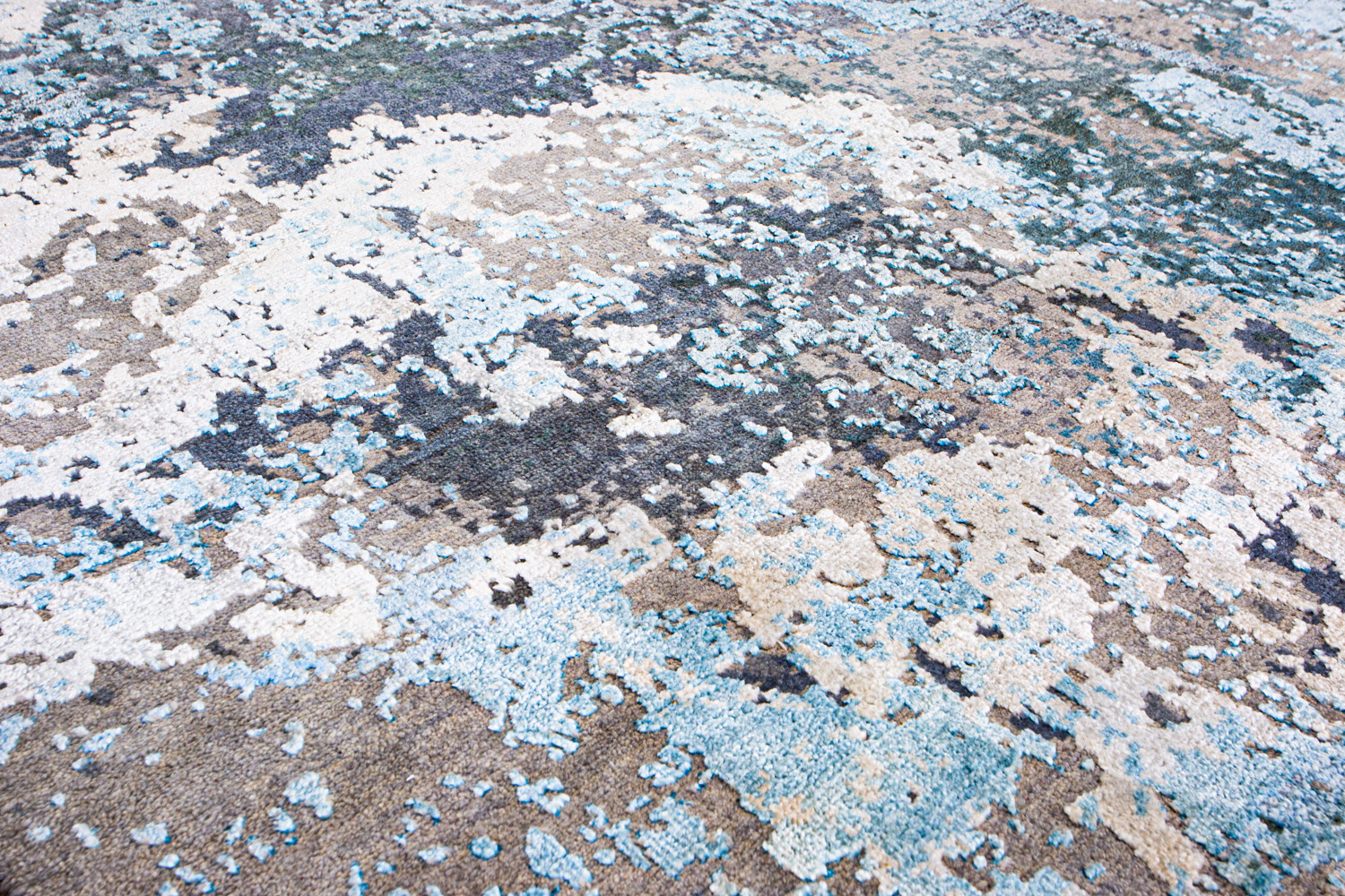 Дизайн ковров напоминает современные полотна художников-абстракционистов и производит столь же яркое и незабываемое впечатление в интерьере. Живописный эффект и необычная фактура зависят от выбора материала: натуральной шерсти, шёлка и от их сочетаний друг с другом. Ковры ткутся вручную в лучших мастерских Индии и Пакистана.