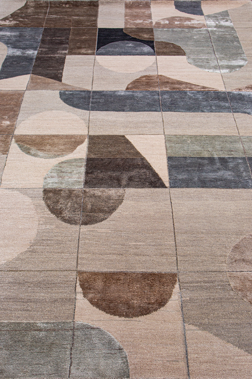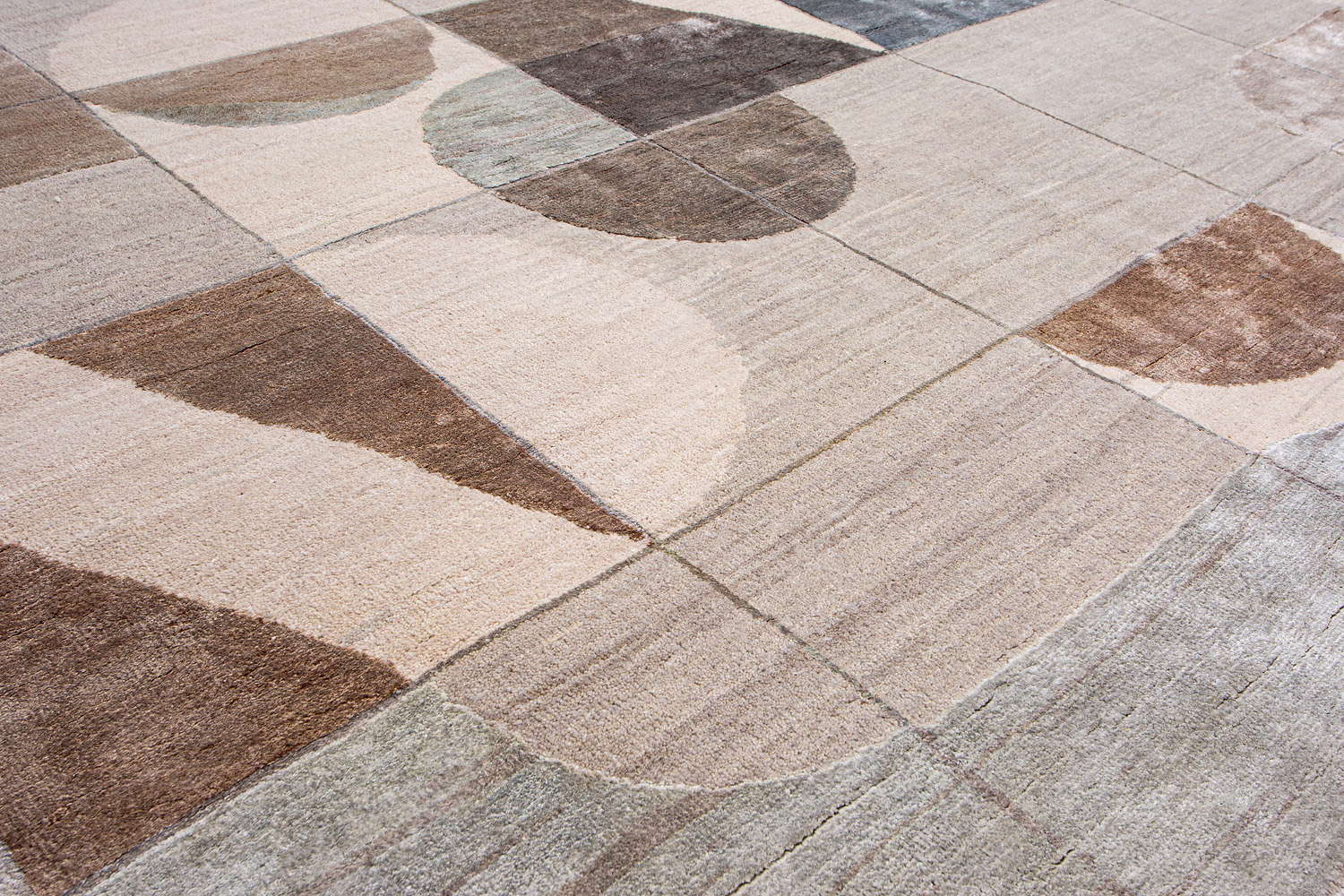 Крупные рисунки в виде линий и фигур на фактурной поверхности ковра превращаются в выразительные композиции. Они акцентируют на себе внимание и добавляют динамики в современный интерьер. Комбинации разных фигур и повторяющийся орнамент задают ритмическую основу пространству, привносят в него оригинальные оптические иллюзии.