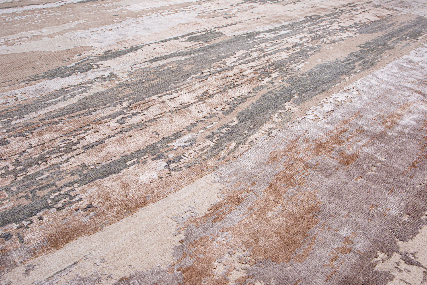 Дизайн ковров напоминает современные полотна художников-абстракционистов и производит столь же яркое и незабываемое впечатление в интерьере. Живописный эффект и необычная фактура зависят от выбора материала: натуральной шерсти, шёлка и от их сочетаний друг с другом. Ковры ткутся вручную в лучших мастерских Индии и Пакистана.