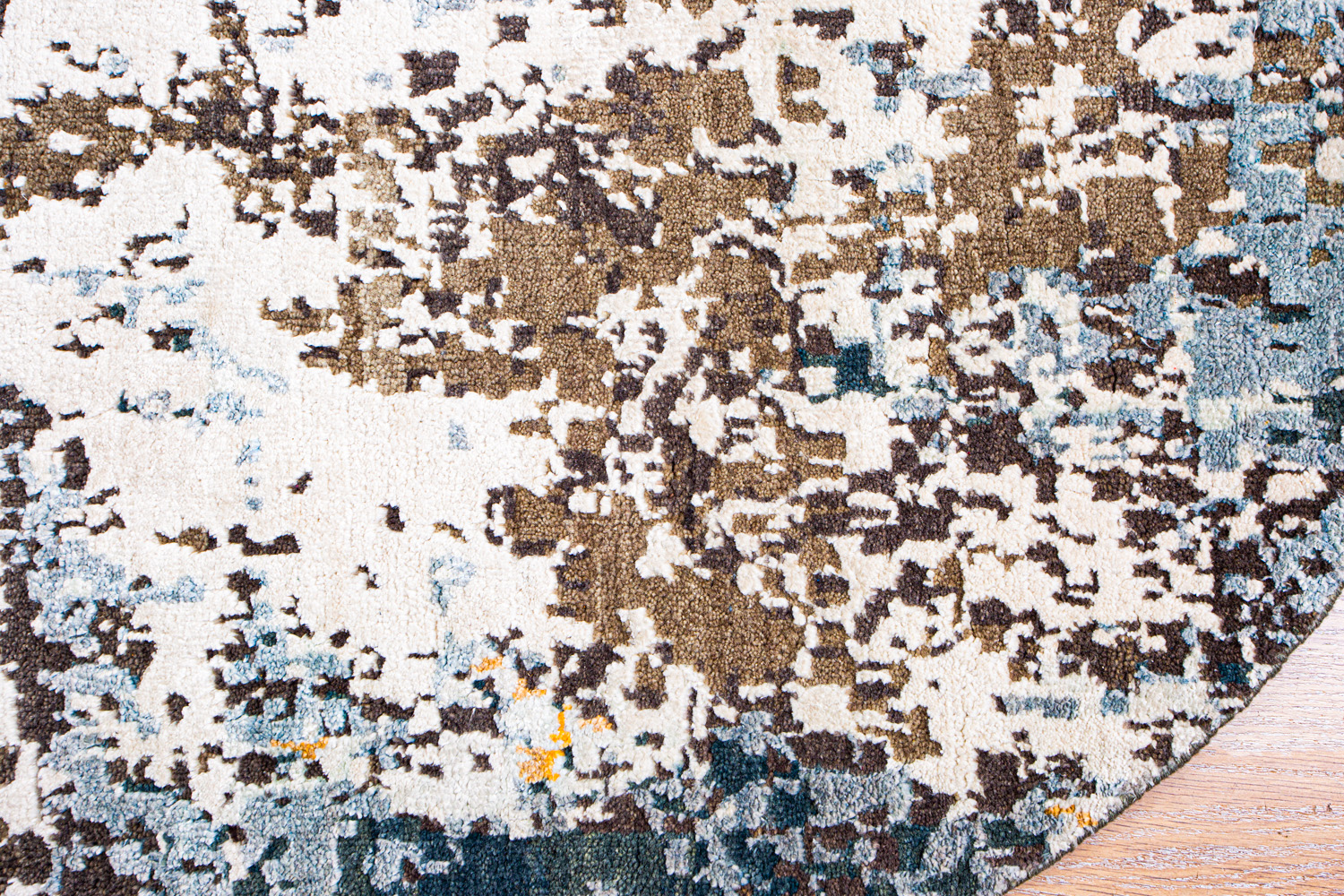 Дизайн ковров напоминает современные полотна художников-абстракционистов и производит столь же яркое и незабываемое впечатление в интерьере. Живописный эффект и необычная фактура зависят от выбора материала: натуральной шерсти, шёлка и от их сочетаний друг с другом. Ковры ткутся вручную в лучших мастерских Индии и Пакистана.