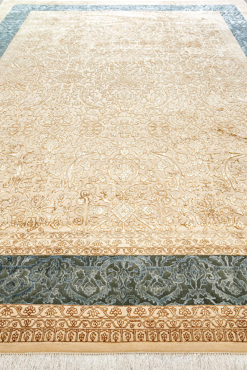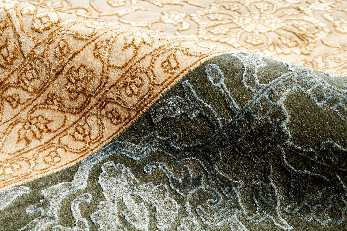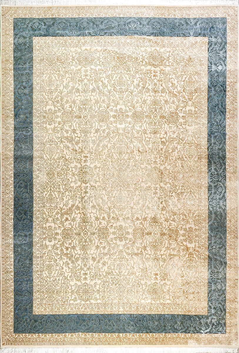 Каждый ковер в этой коллекции соткан вручную из шерсти и арт шёлка опытными индийскими мастерами.