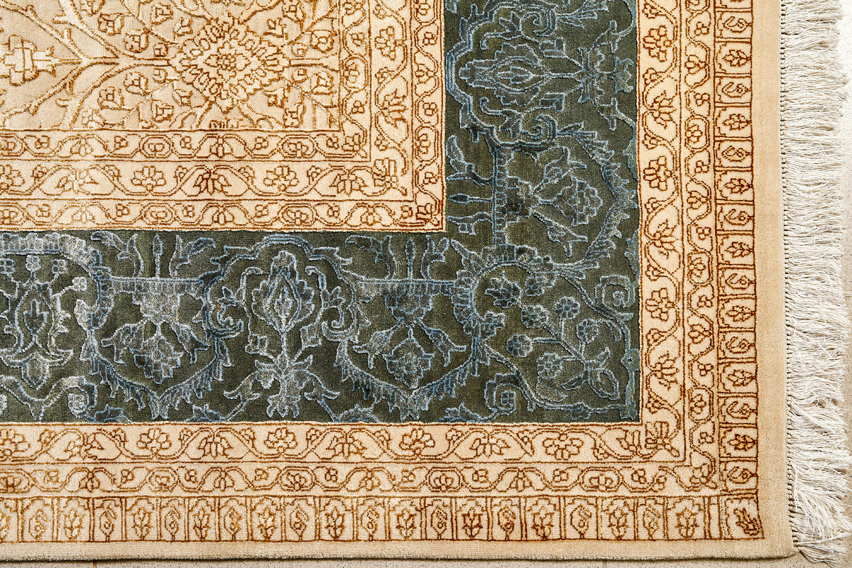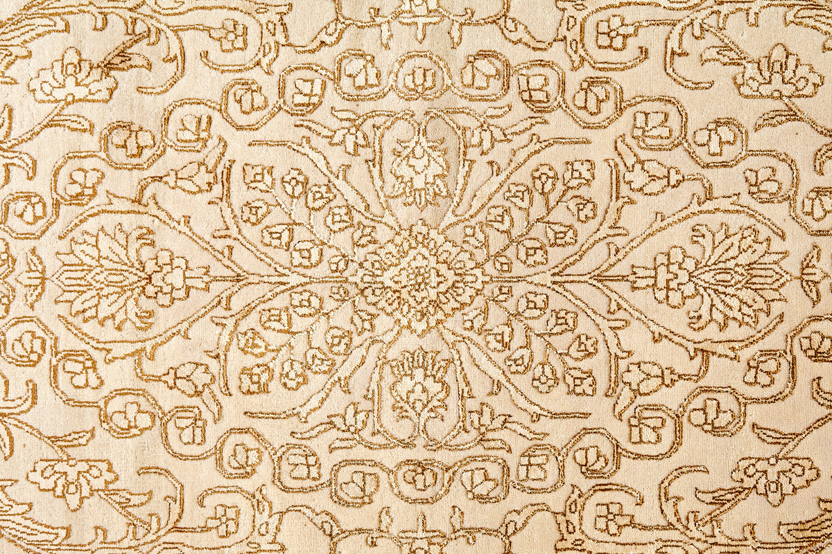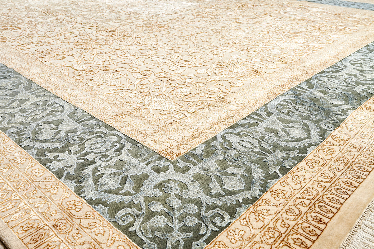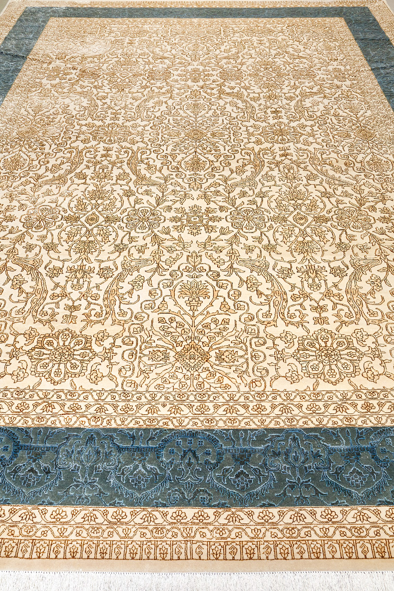 Каждый ковер в этой коллекции соткан вручную из шерсти и арт шёлка опытными индийскими мастерами.