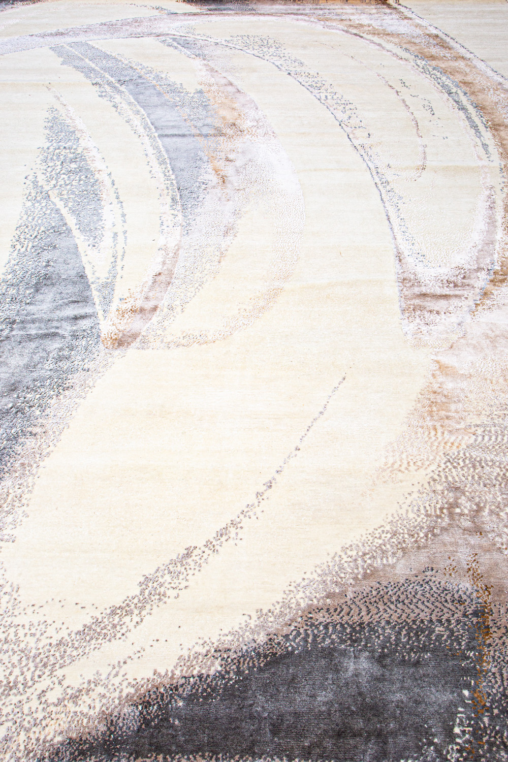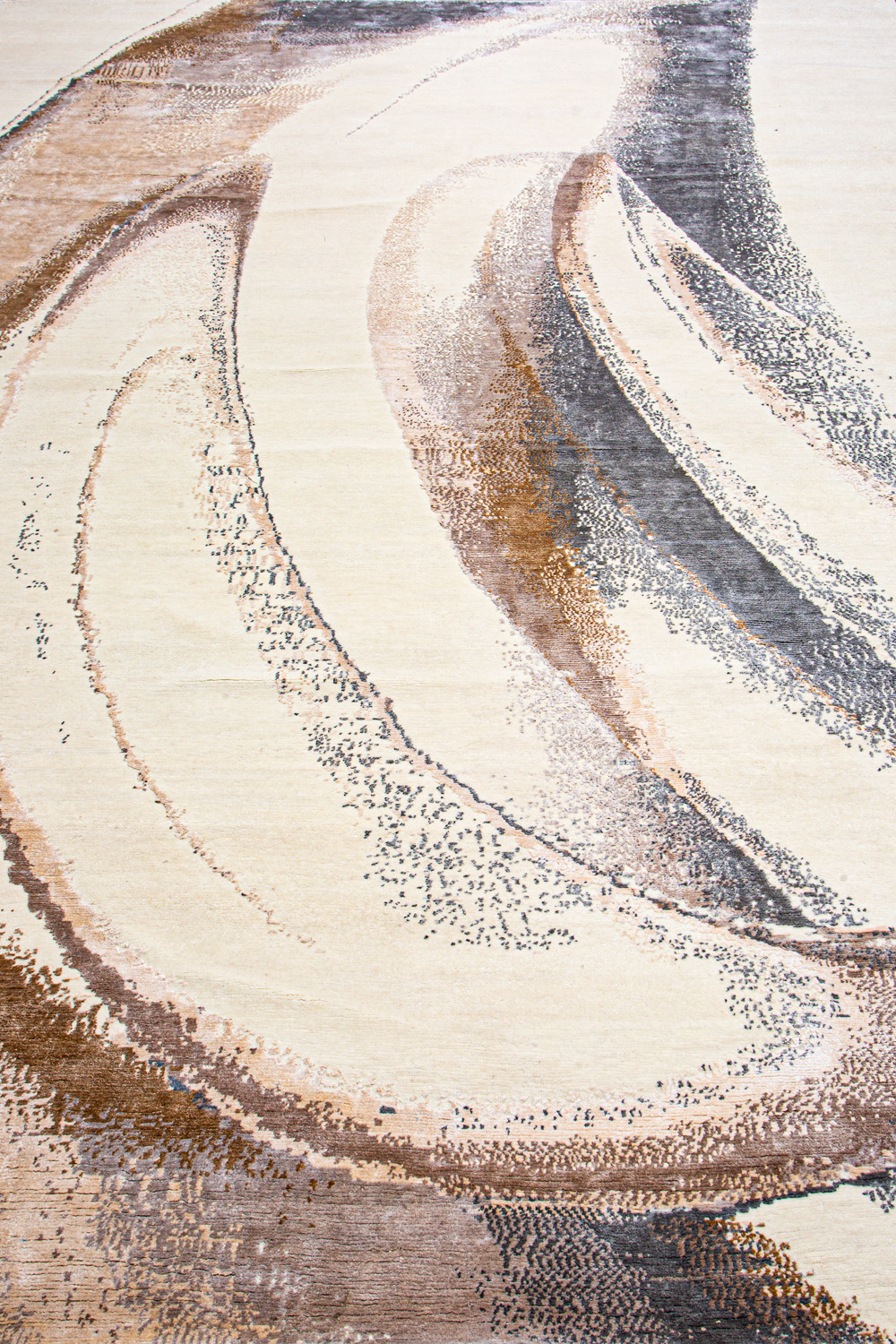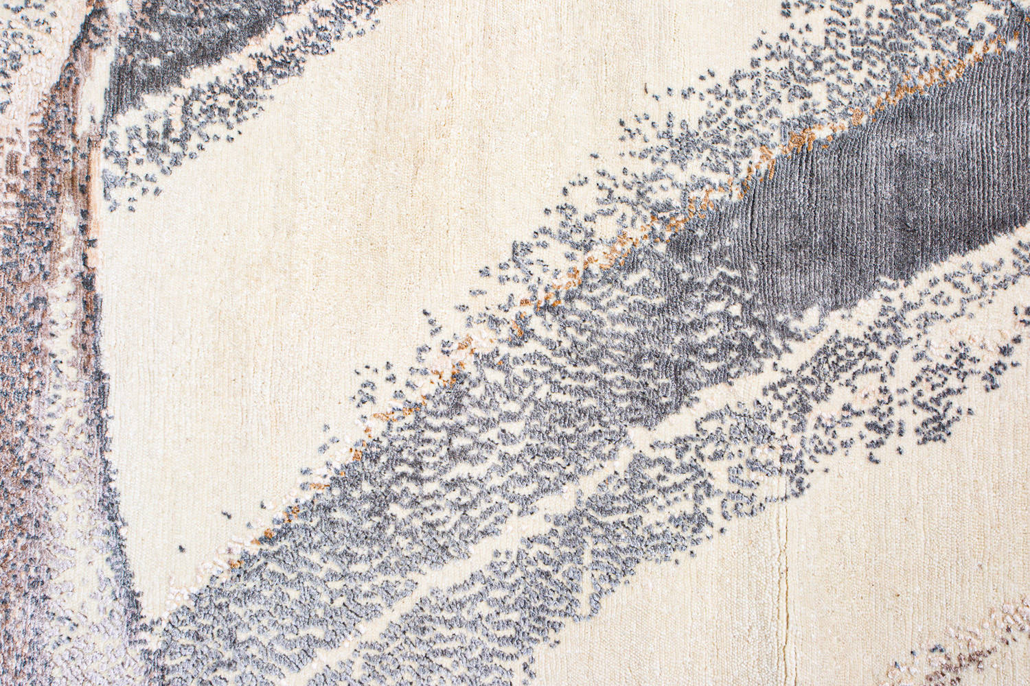 Дизайн ковров напоминает современные полотна художников-абстракционистов и производит столь же яркое и незабываемое впечатление в интерьере. Живописный эффект и необычная фактура зависят от выбора материала: натуральной шерсти, шёлка и от их сочетаний друг с другом. Ковры ткутся вручную в лучших мастерских Индии и Пакистана.