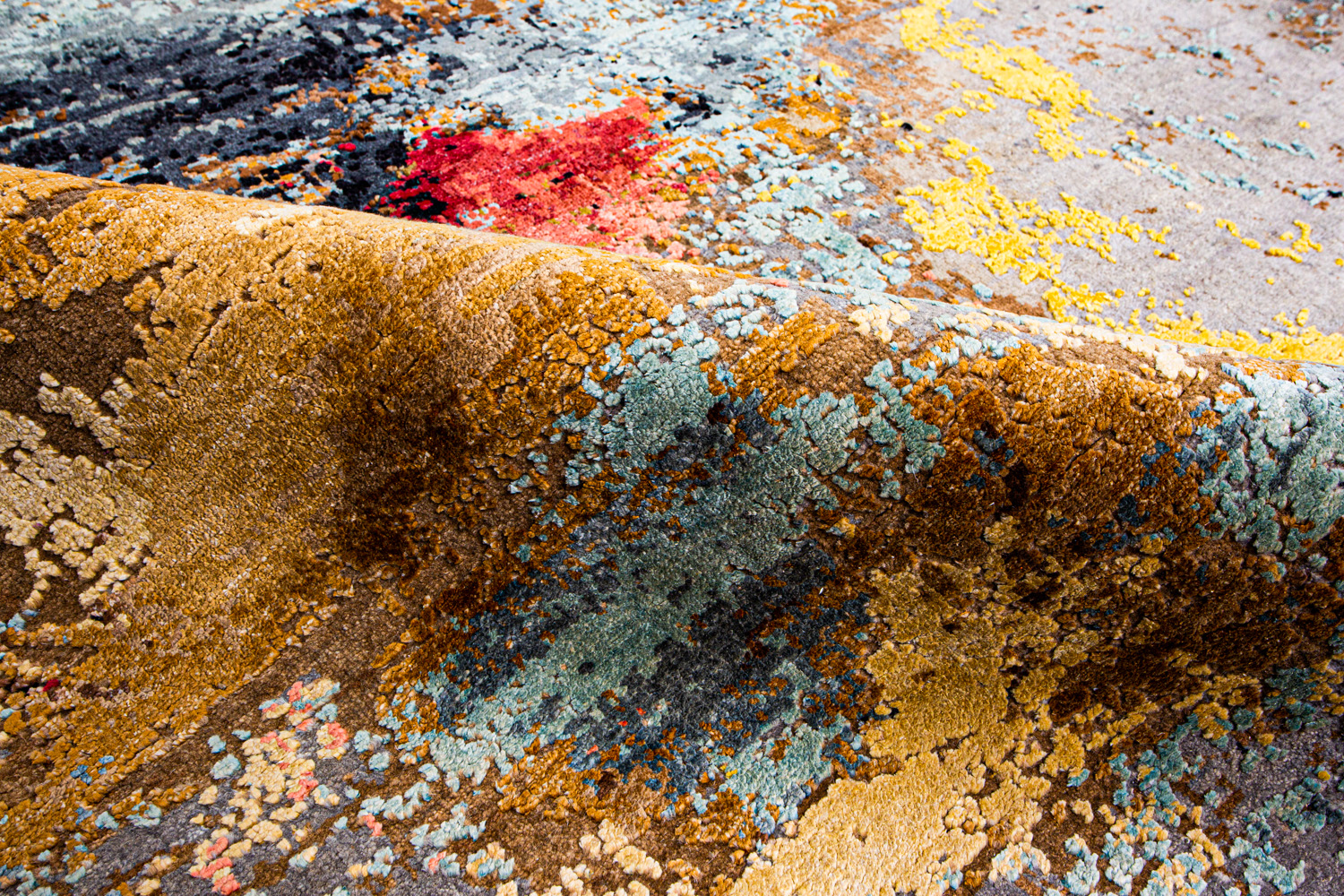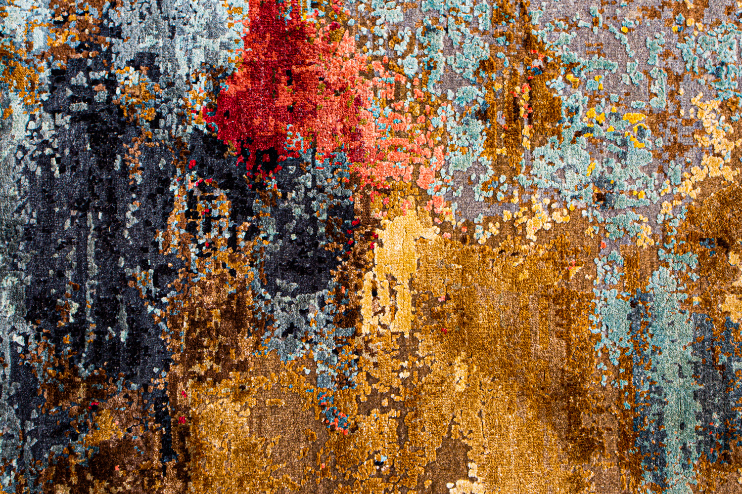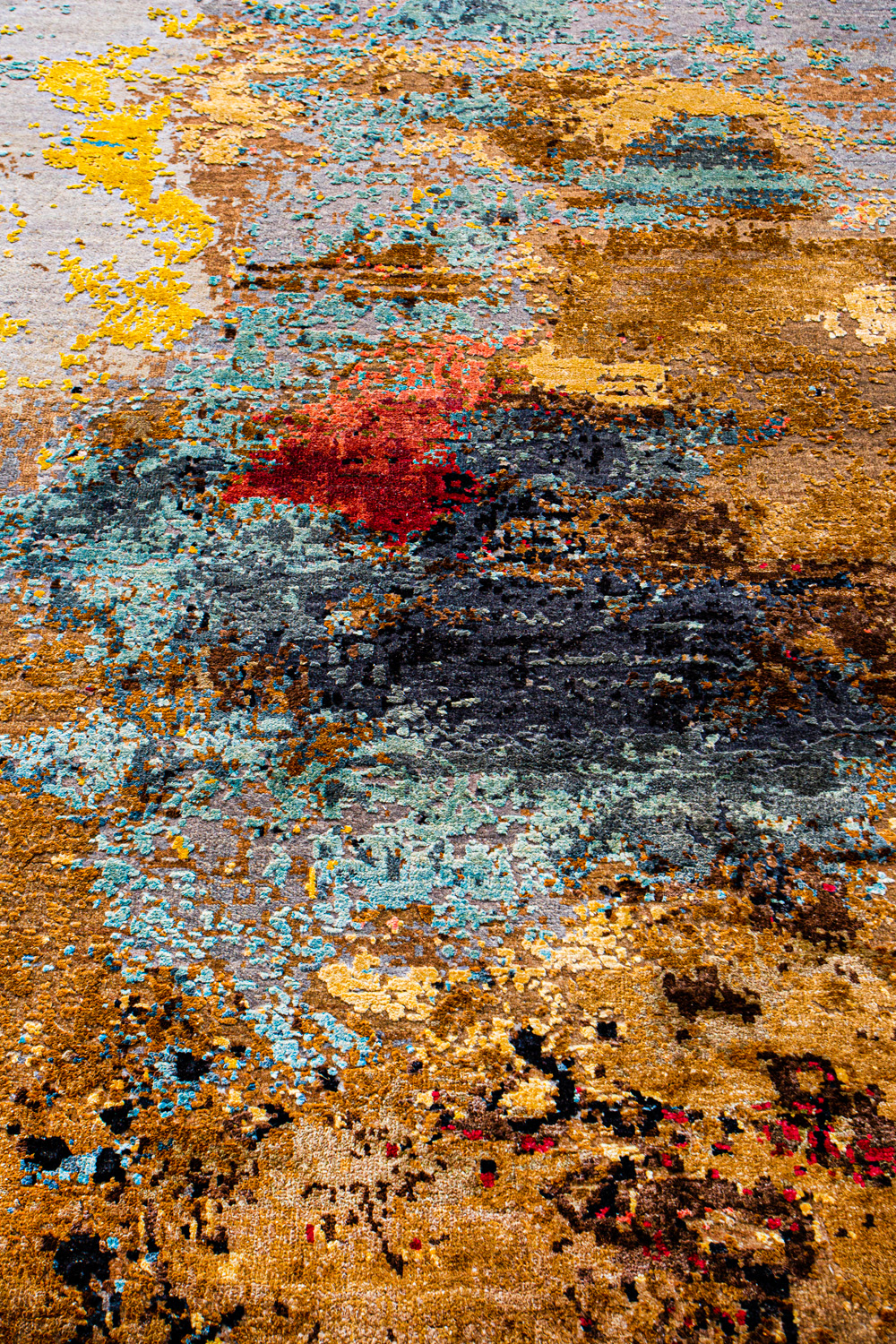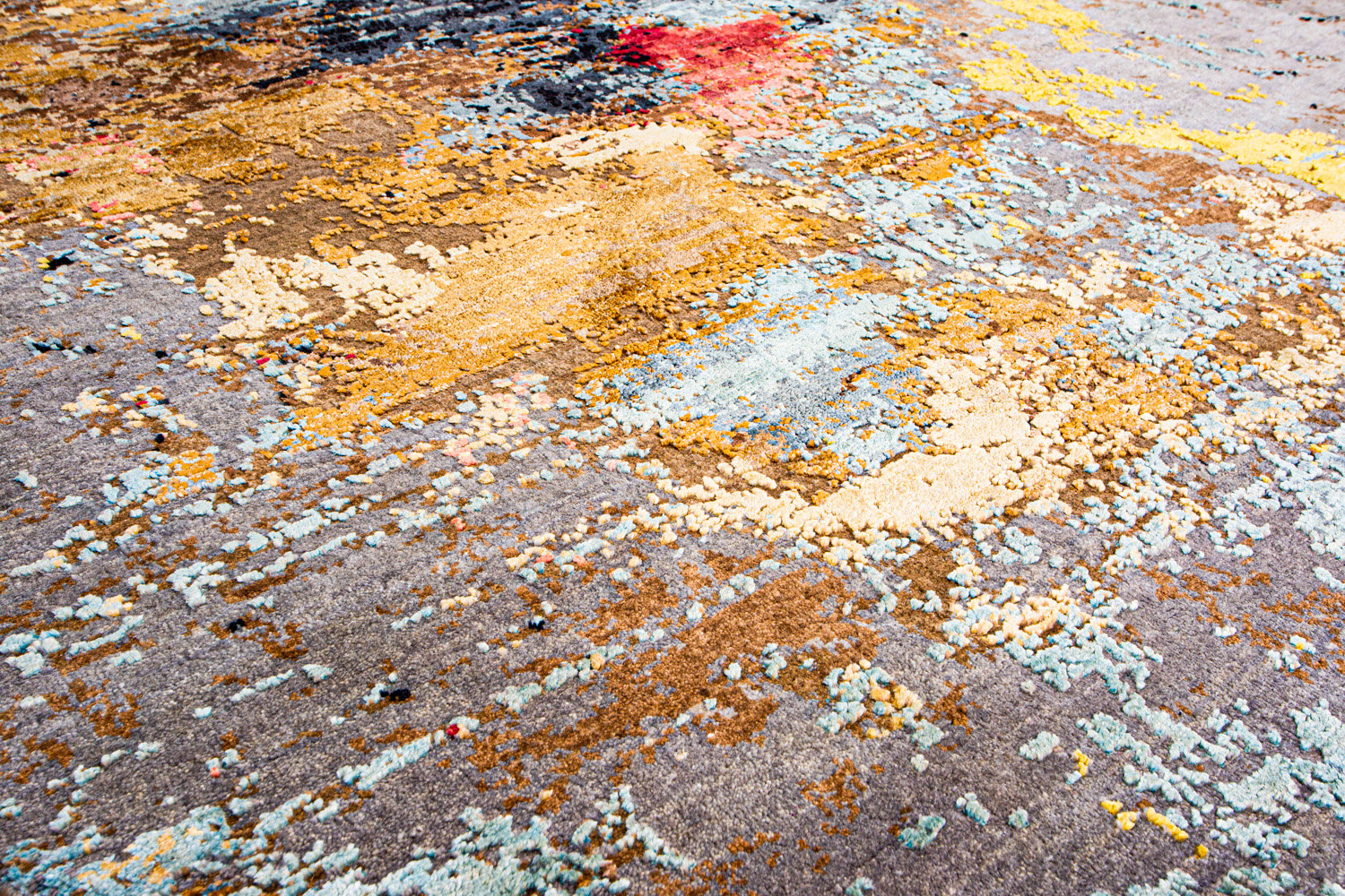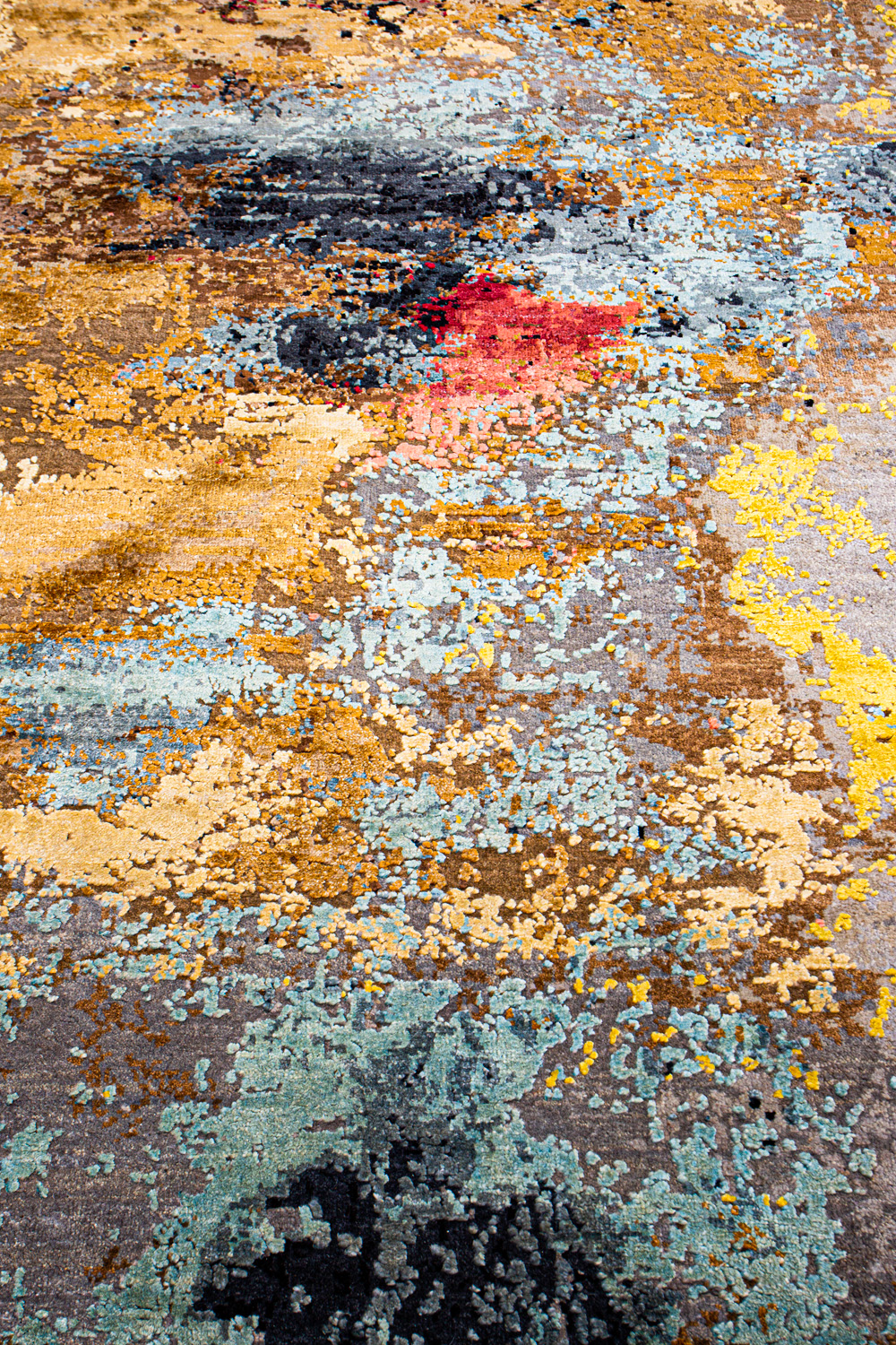 Дизайн ковров напоминает современные полотна художников-абстракционистов и производит столь же яркое и незабываемое впечатление в интерьере. Живописный эффект и необычная фактура зависят от выбора материала: натуральной шерсти, шёлка и от их сочетаний друг с другом. Ковры ткутся вручную в лучших мастерских Индии и Пакистана.