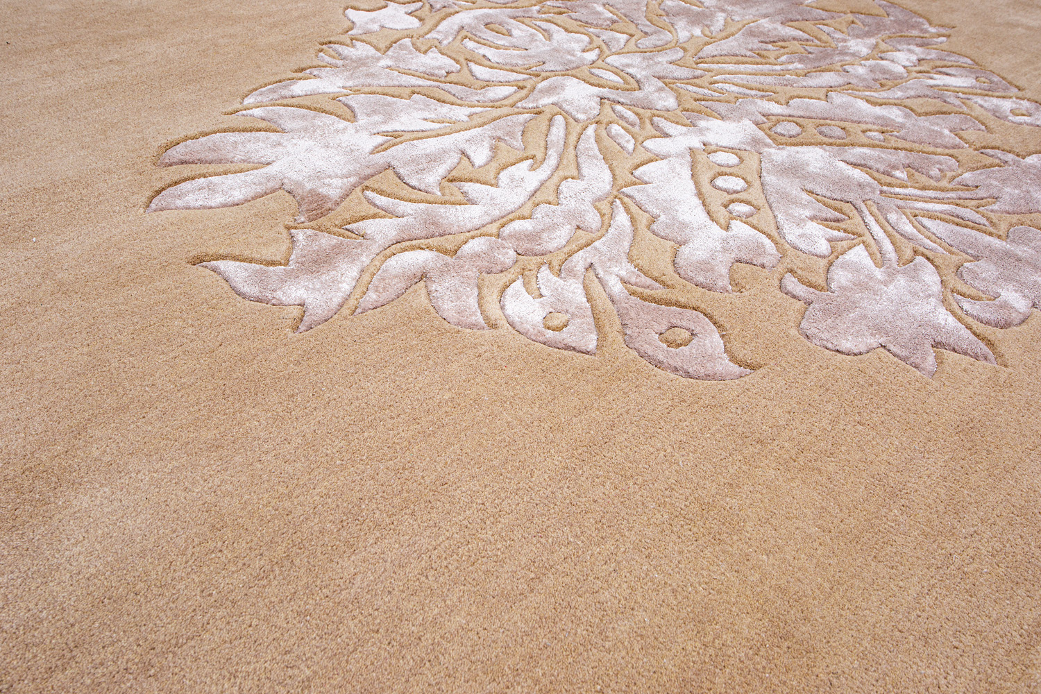 Ковры изготовлены методом ручного тафтинга. Эта технология позволяет создавать объемный рисунок и мягкие переходы цвета. Почитатели коллекции Shine ценят богатую фактуру ковров в сочетании с натуральными материалами и превосходной техникой в исполнении индийских мастеров.