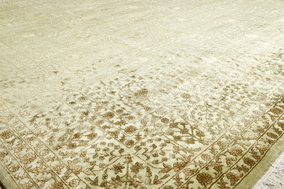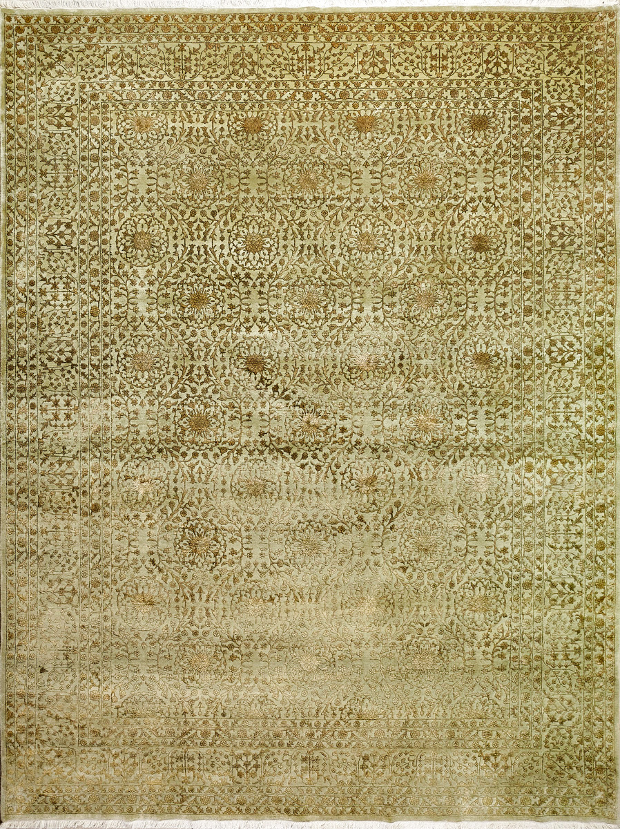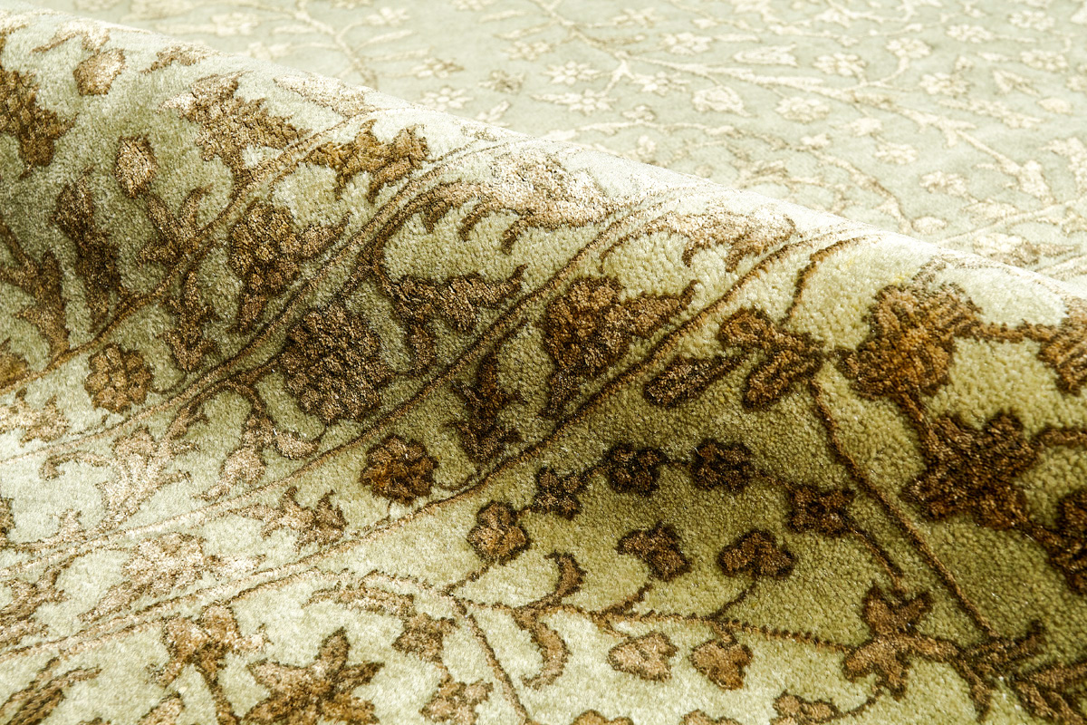 Каждый ковер в этой коллекции соткан вручную из шерсти и арт шёлка опытными индийскими мастерами.