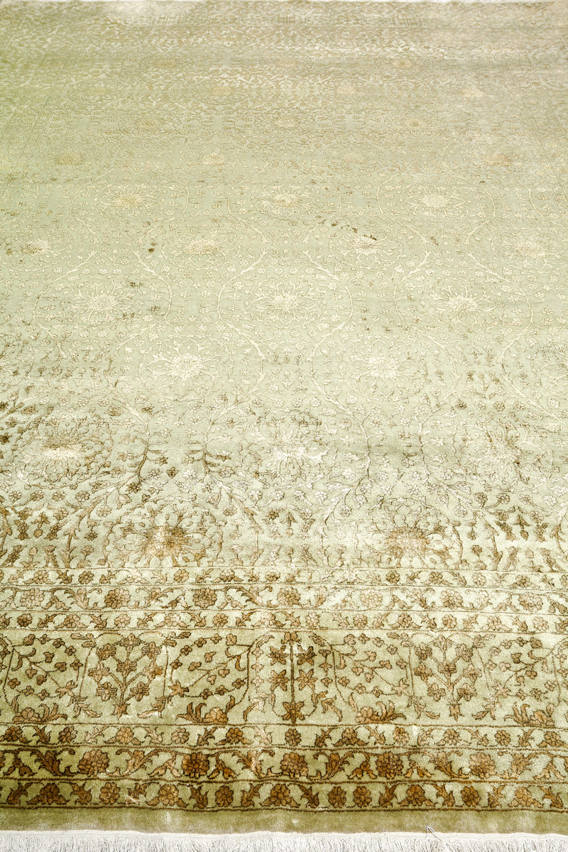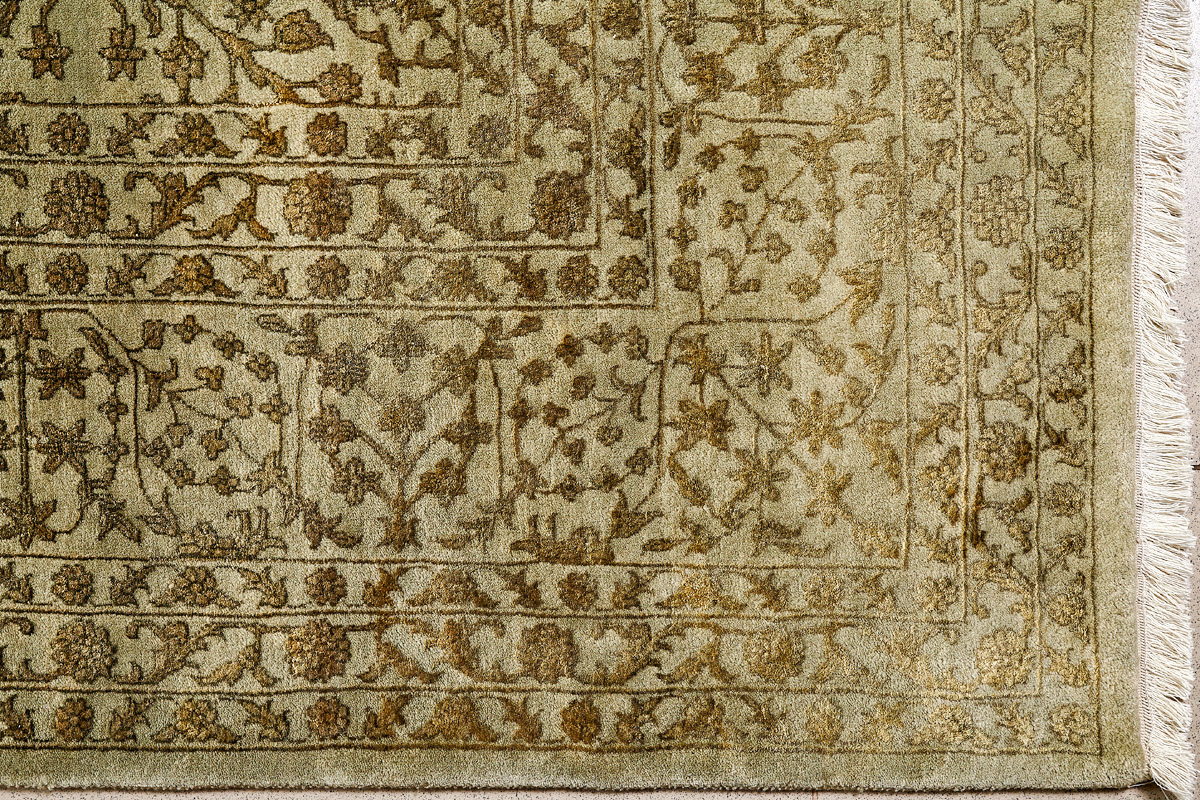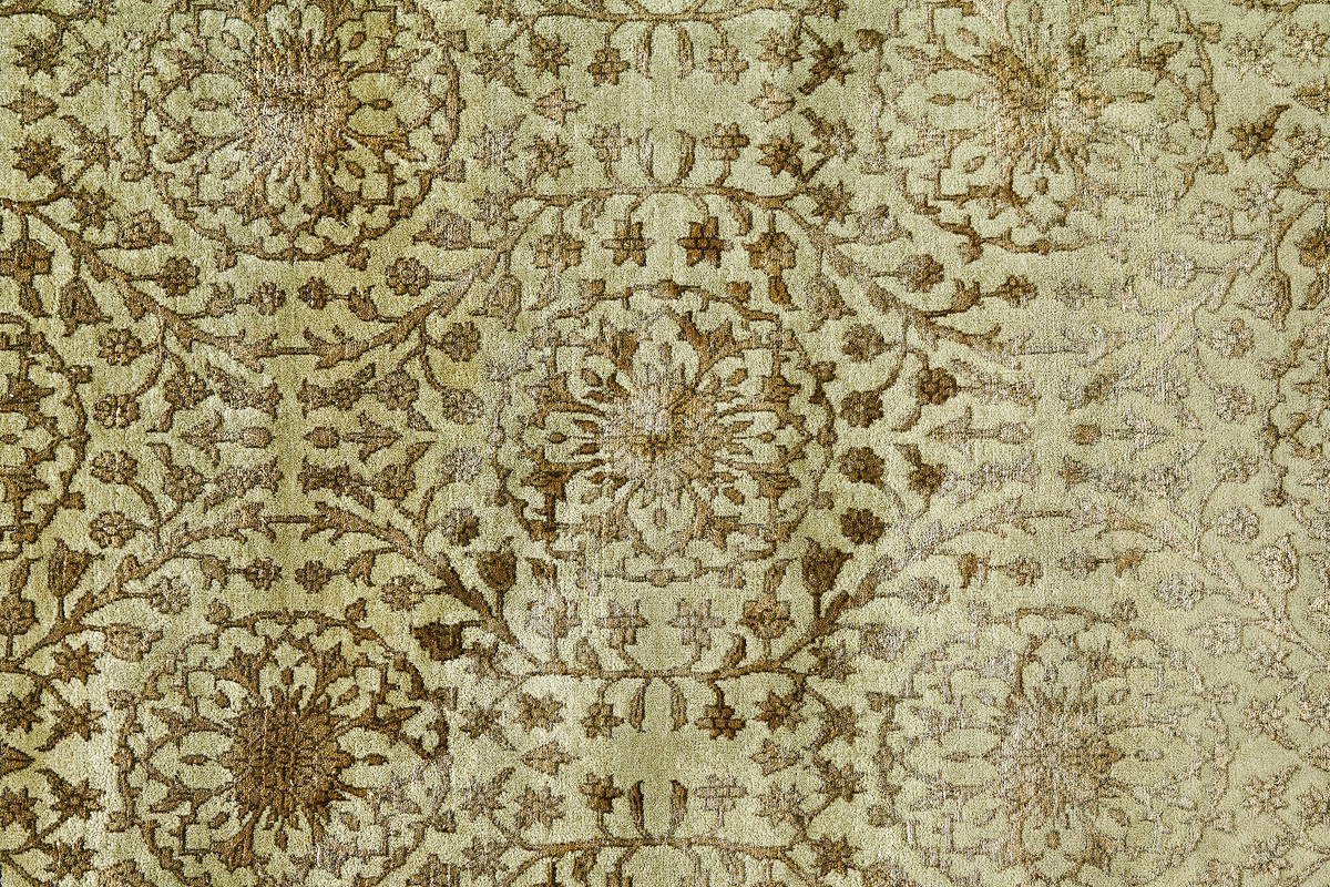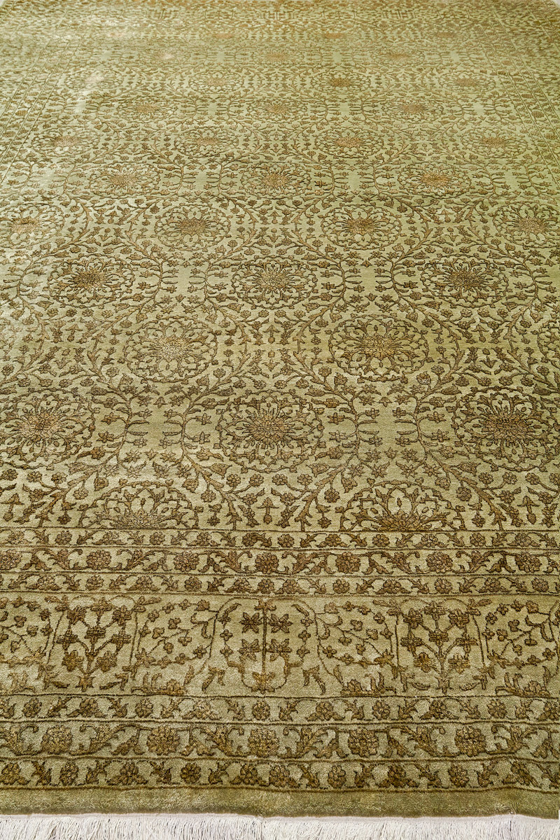 Каждый ковер в этой коллекции соткан вручную из шерсти и арт шёлка опытными индийскими мастерами.