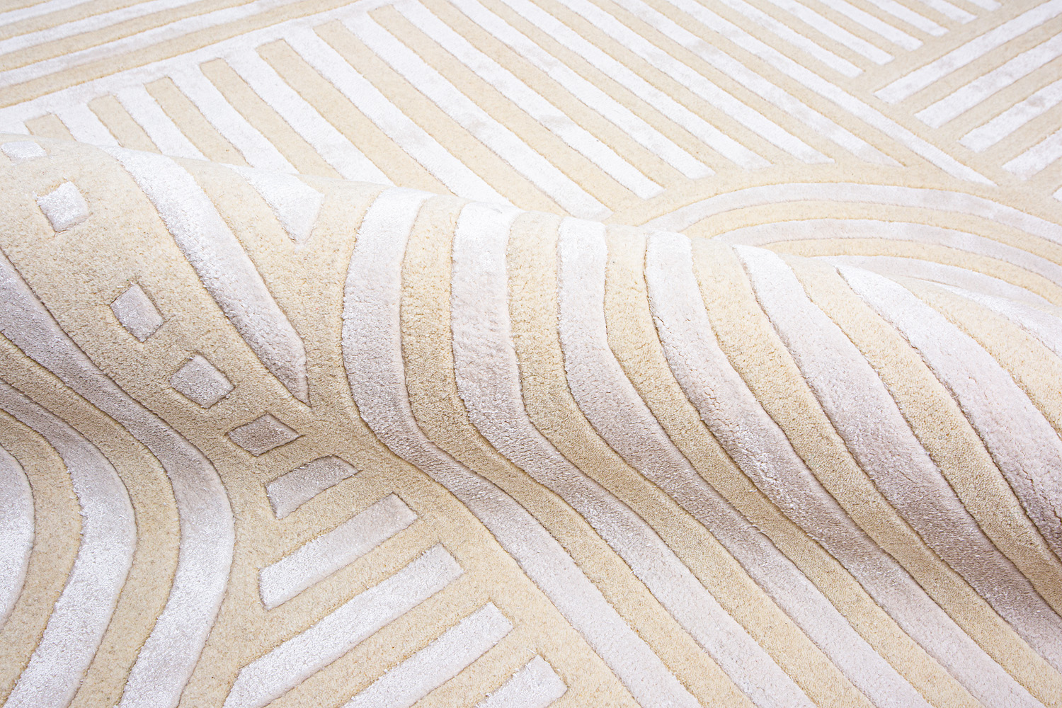 Ковры изготовлены методом ручного тафтинга. Эта технология позволяет создавать объемный рисунок и мягкие переходы цвета. Почитатели коллекции Shine ценят богатую фактуру ковров в сочетании с натуральными материалами и превосходной техникой в исполнении индийских мастеров.