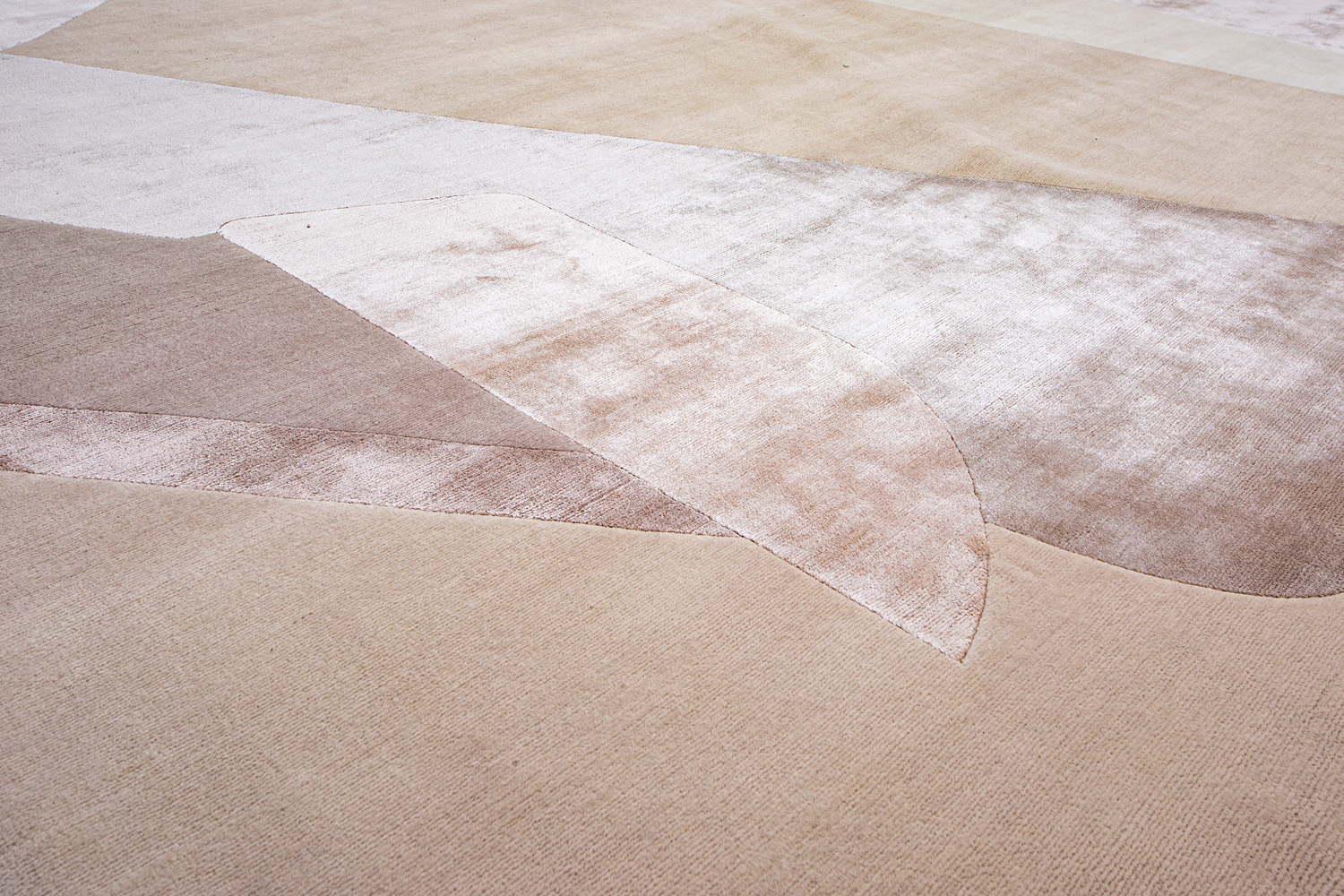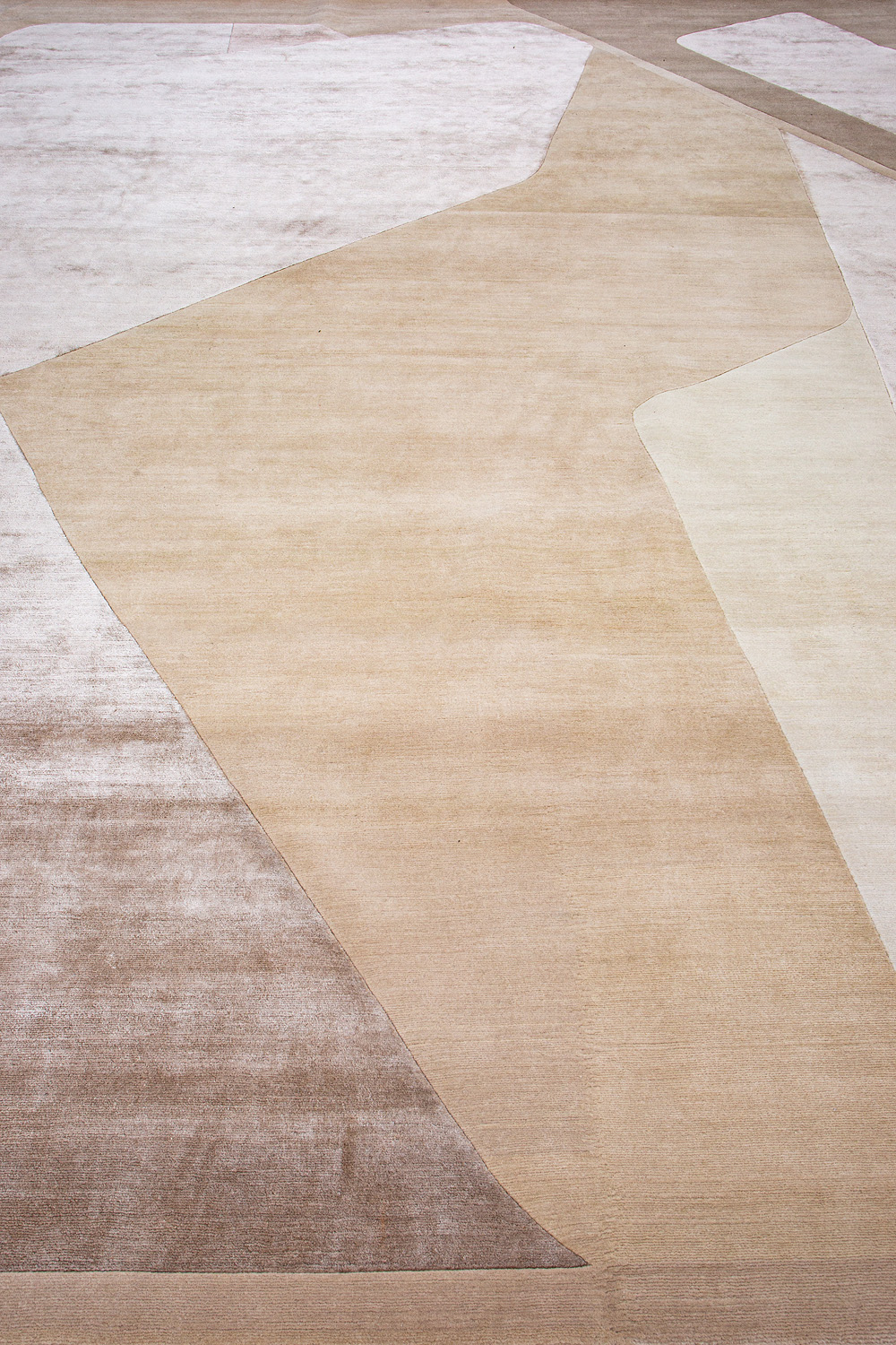 Крупные рисунки в виде линий и фигур на фактурной поверхности ковра превращаются в выразительные композиции. Они акцентируют на себе внимание и добавляют динамики в современный интерьер. Комбинации разных фигур и повторяющийся орнамент задают ритмическую основу пространству, привносят в него оригинальные оптические иллюзии.