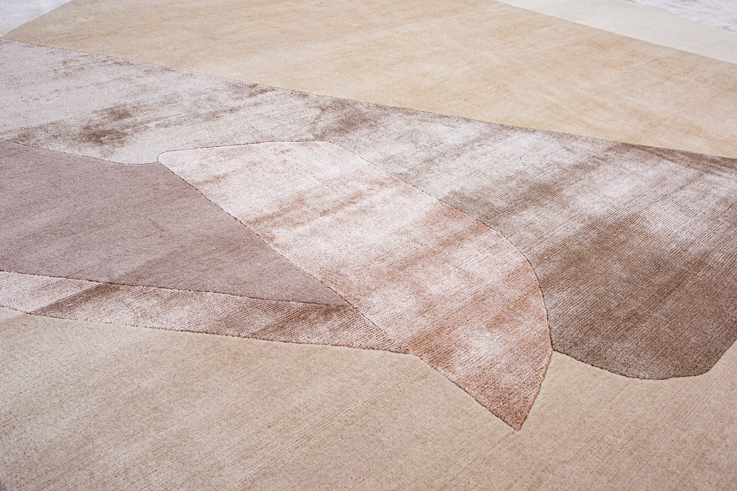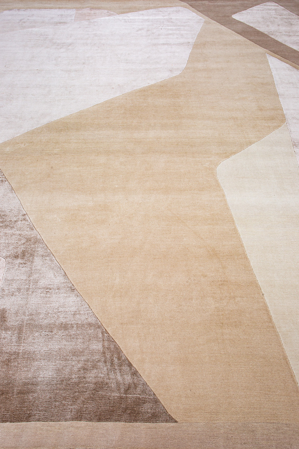 Крупные рисунки в виде линий и фигур на фактурной поверхности ковра превращаются в выразительные композиции. Они акцентируют на себе внимание и добавляют динамики в современный интерьер. Комбинации разных фигур и повторяющийся орнамент задают ритмическую основу пространству, привносят в него оригинальные оптические иллюзии.