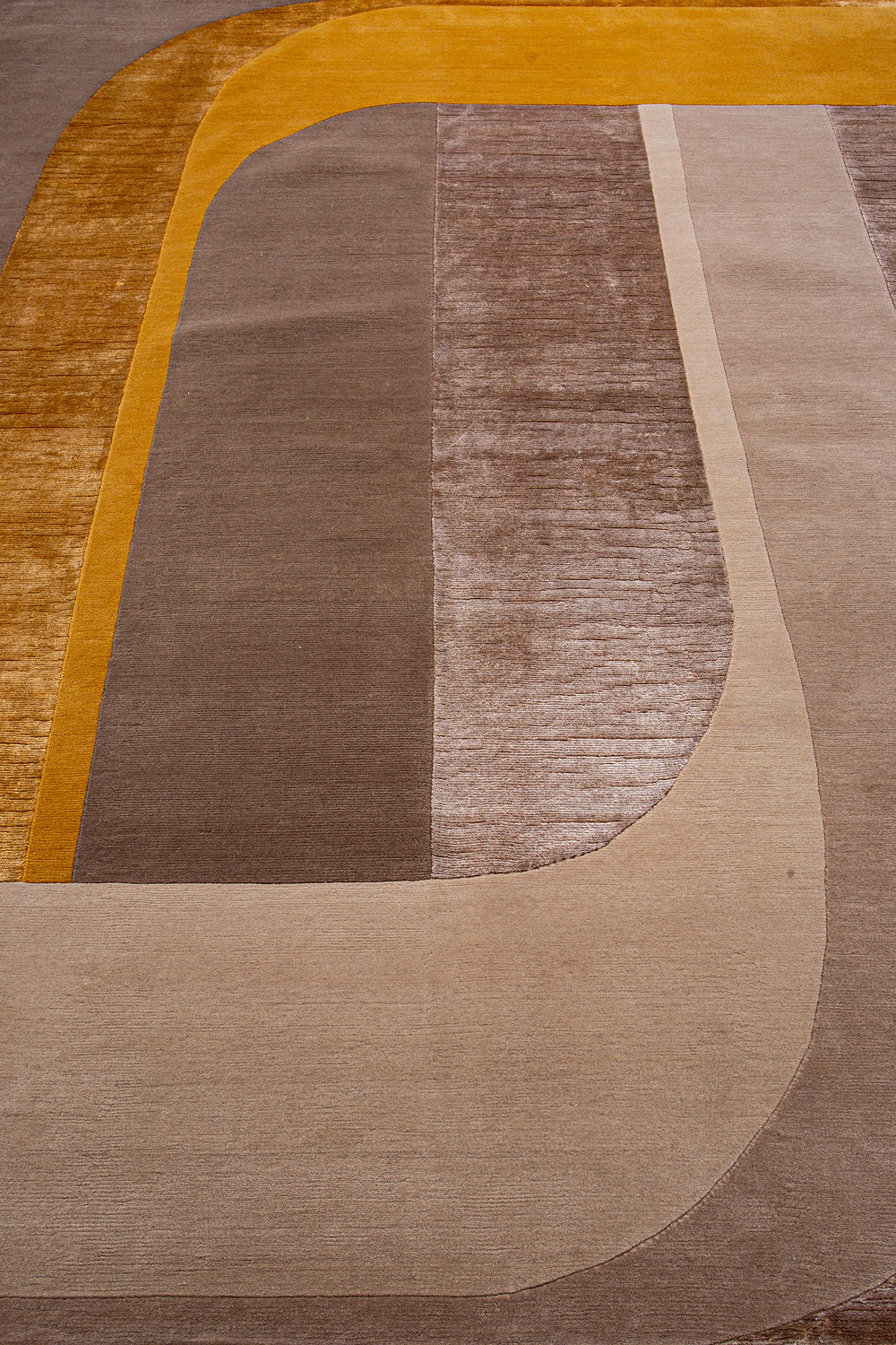 Крупные рисунки в виде линий и фигур на фактурной поверхности ковра превращаются в выразительные композиции. Они акцентируют на себе внимание и добавляют динамики в современный интерьер. Комбинации разных фигур и повторяющийся орнамент задают ритмическую основу пространству, привносят в него оригинальные оптические иллюзии.