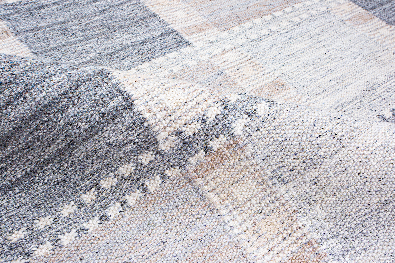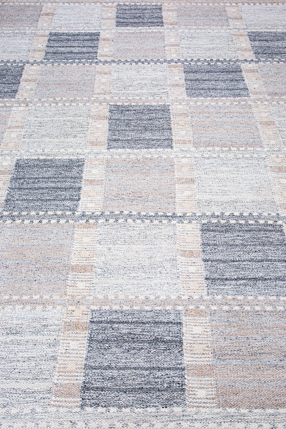 Узор ковров из коллекции Килим создаётся взаимодействием нитей утока и нитей основы, благодаря чему получается геометрический узор.