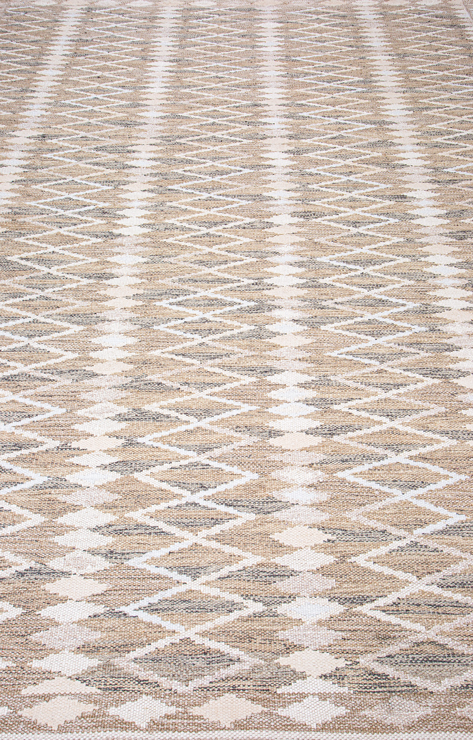 Узор ковров из коллекции Килим создаётся взаимодействием нитей утока и нитей основы, благодаря чему получается геометрический узор.