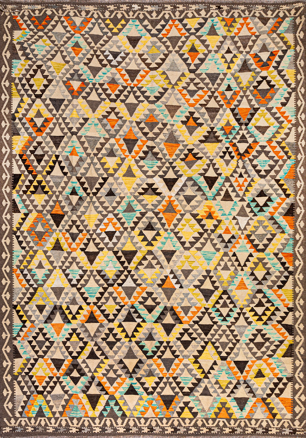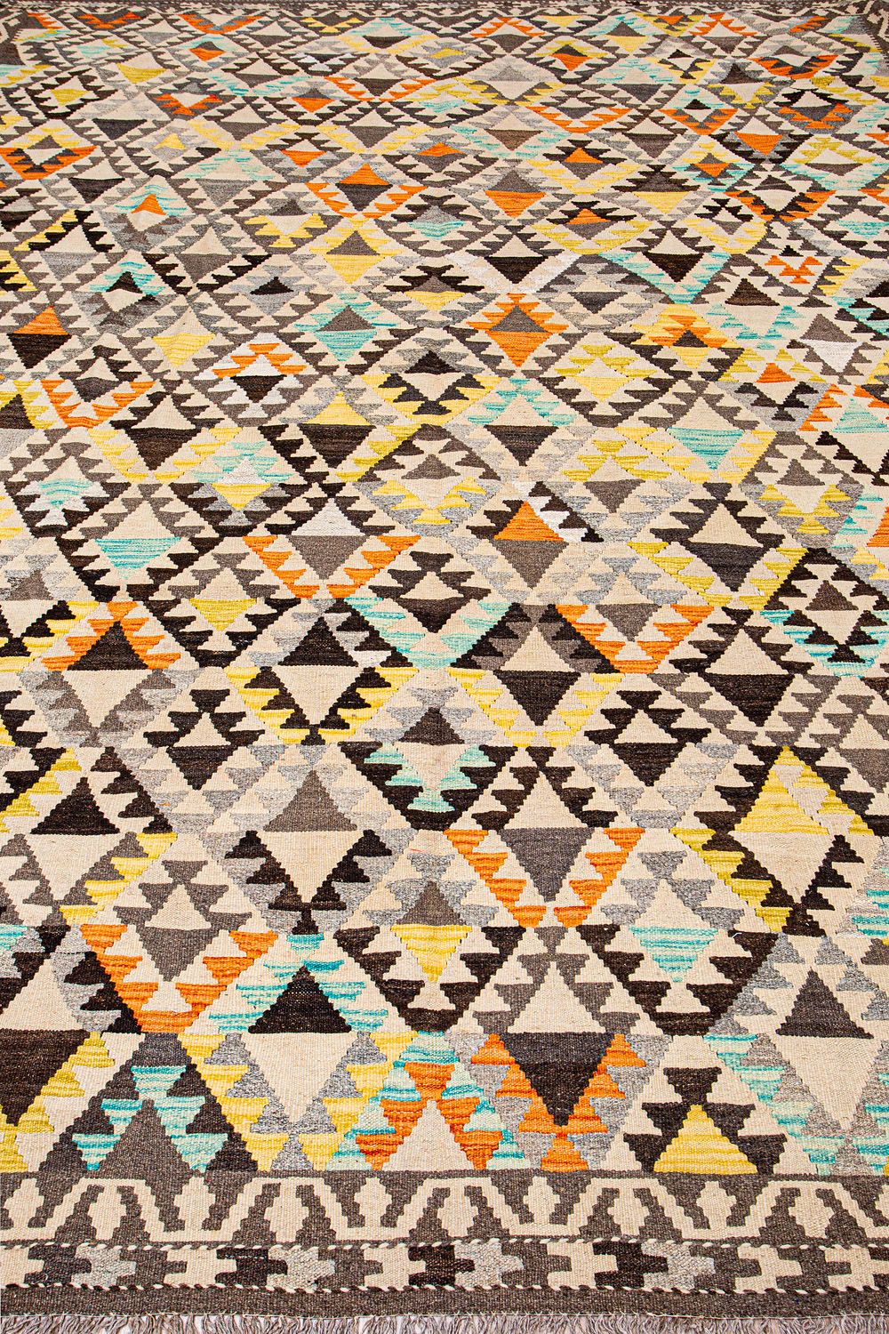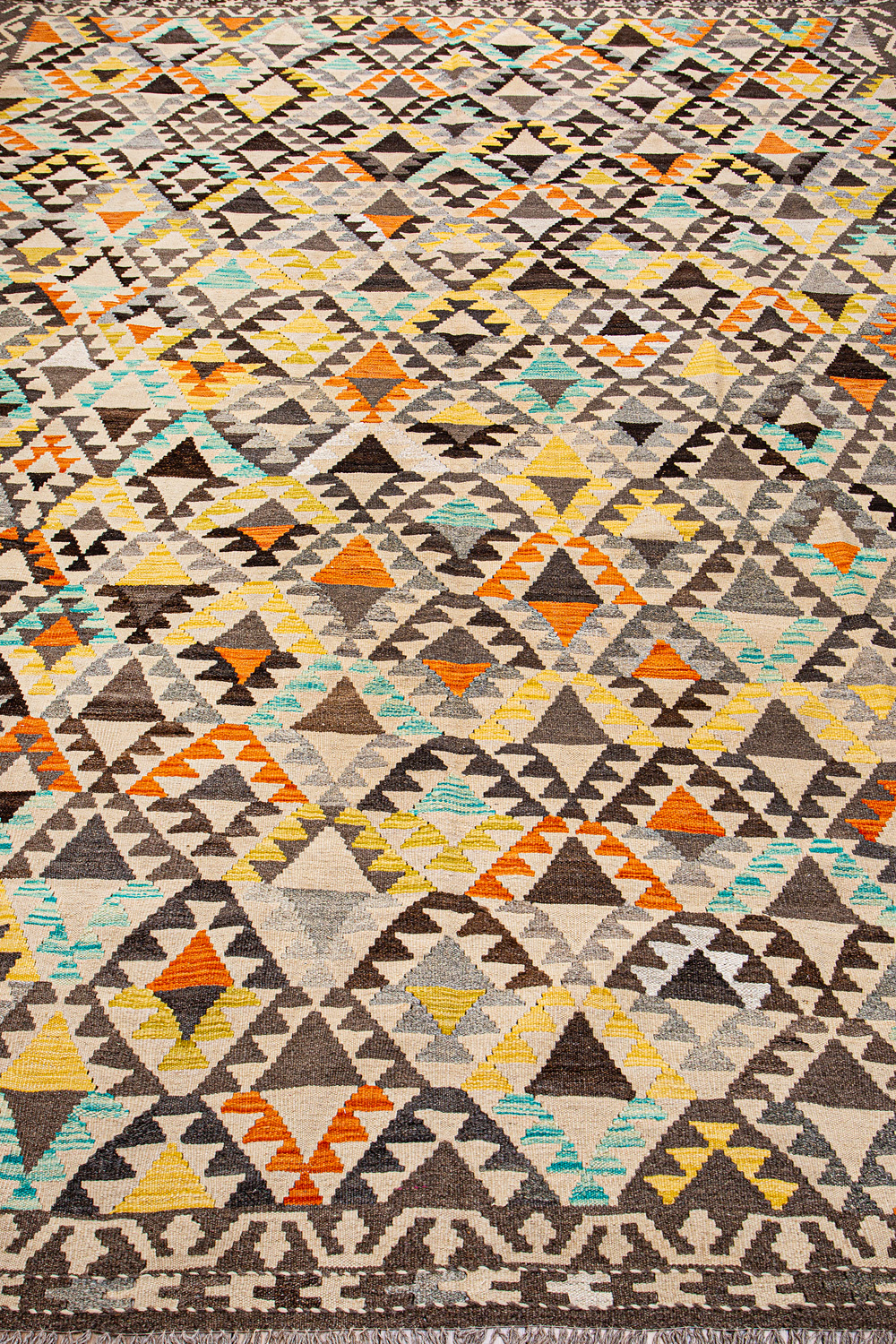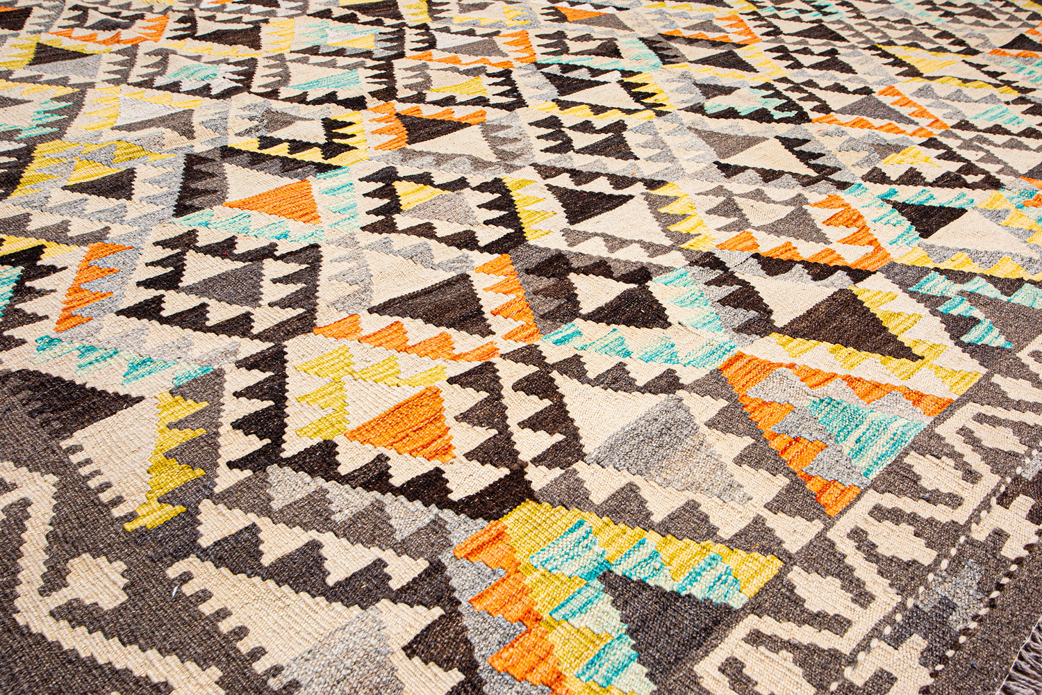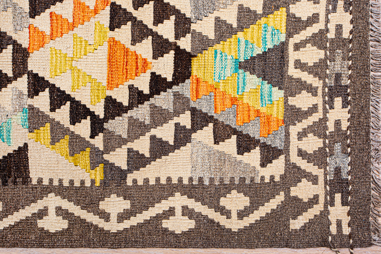 Узор ковров из коллекции Килим создаётся взаимодействием нитей утока и нитей основы, благодаря чему получается геометрический узор.