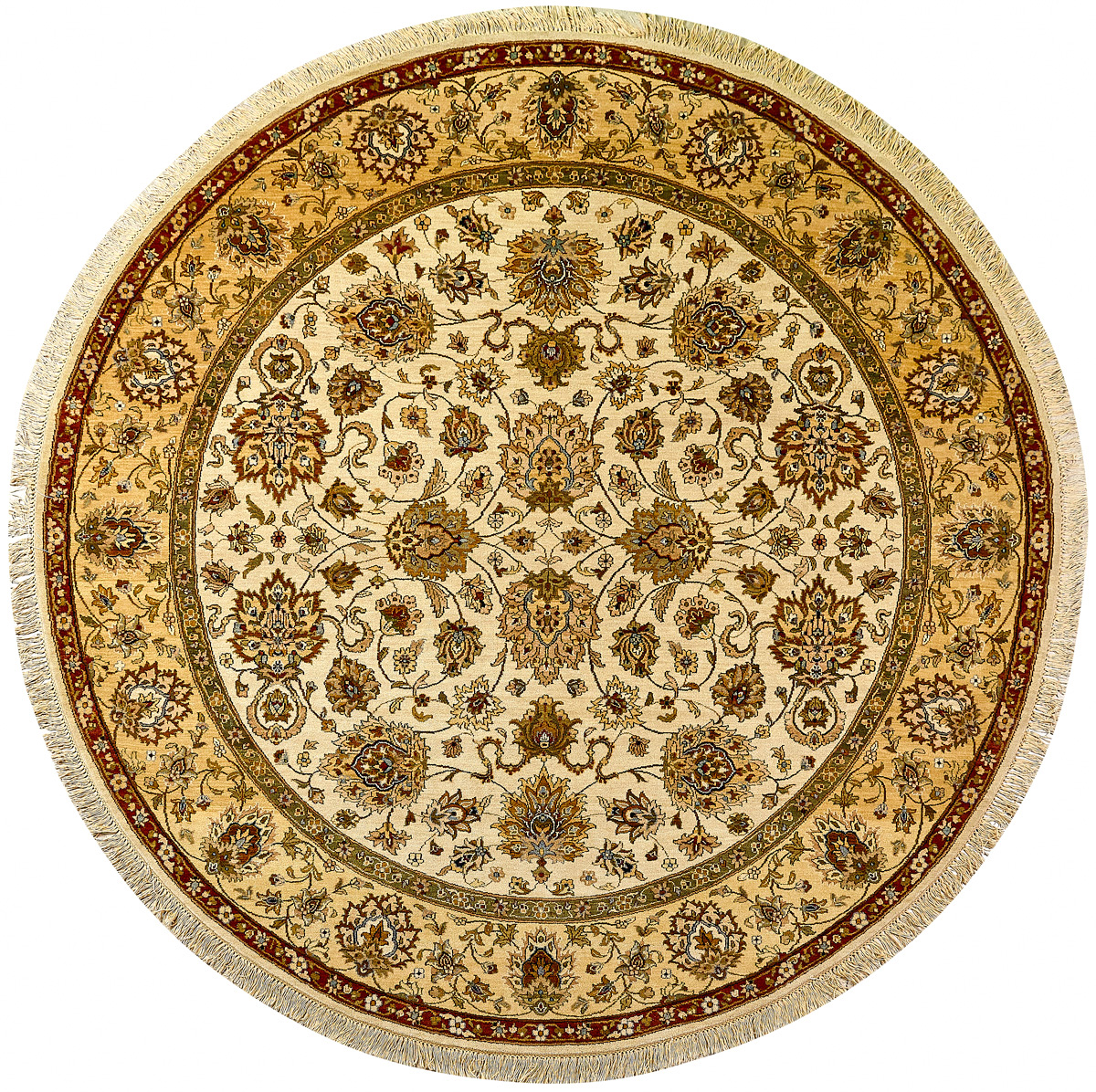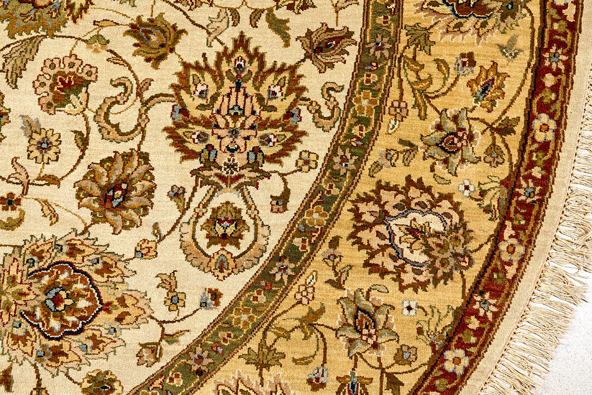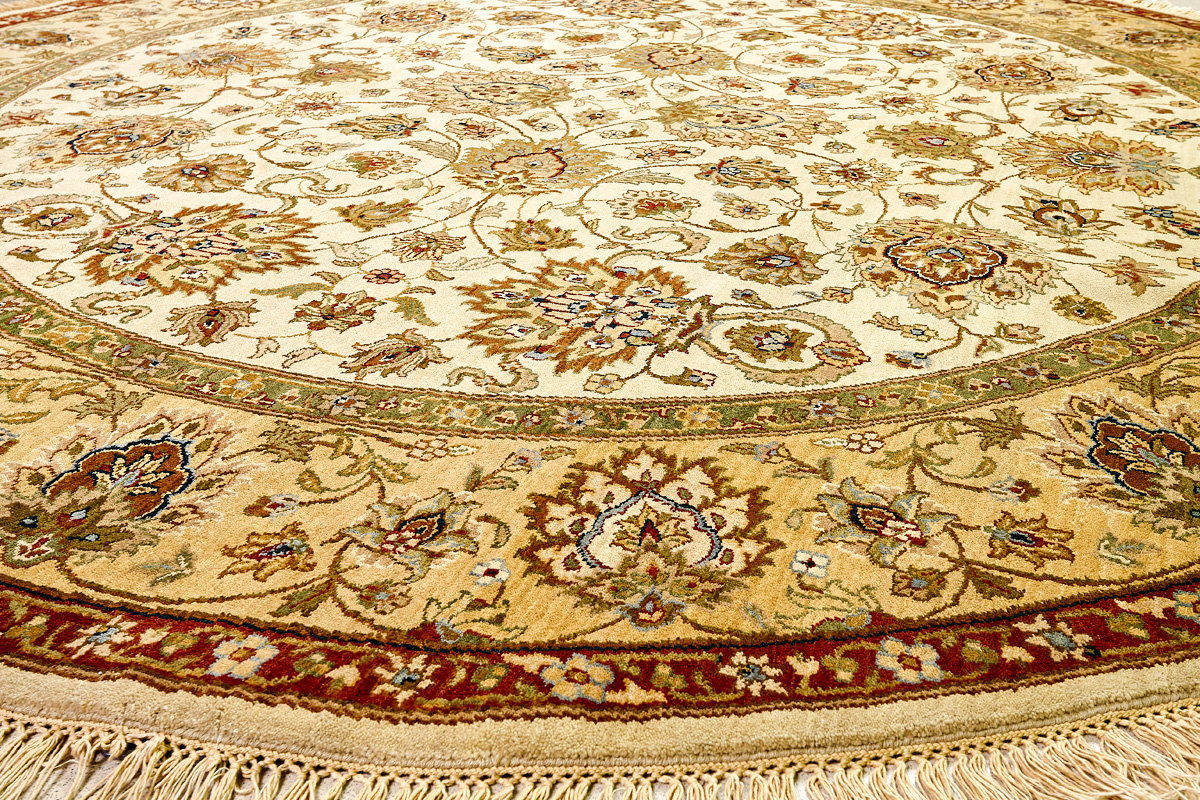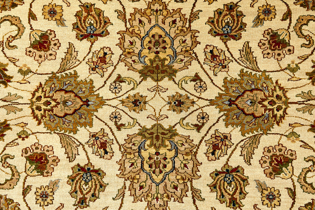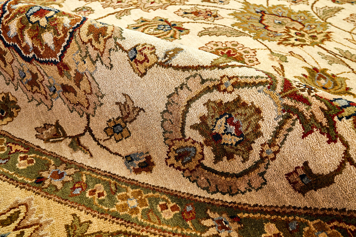 Более пяти веков назад в городе Агра зародилась знаменитая индийская школа ковроткачества, прославившаяся не меньше, чем расположенный здесь же Тадж-Махал. Мощное персидское влияние, помноженное на местный колорит, привело к появлению оригинальных орнаментов с богатыми растительными узорами — причудливым цветам, ветвям и листьям, разбросанным по всему полю ковра.