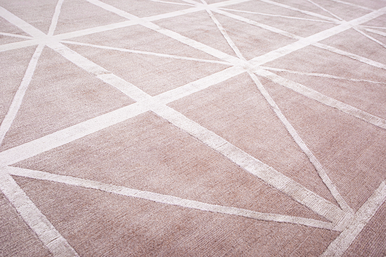 Крупные рисунки в виде линий и фигур на фактурной поверхности ковра превращаются в выразительные композиции. Они акцентируют на себе внимание и добавляют динамики в современный интерьер. Комбинации разных фигур и повторяющийся орнамент задают ритмическую основу пространству, привносят в него оригинальные оптические иллюзии.