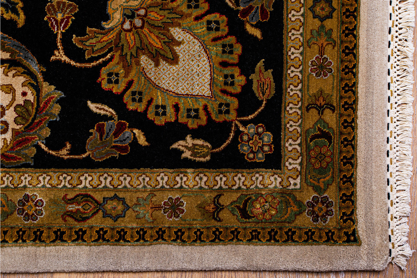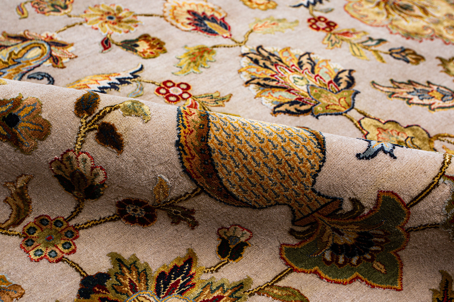 Каждый ковер в этой коллекции соткан вручную из шерсти и арт шёлка опытными индийскими мастерами.