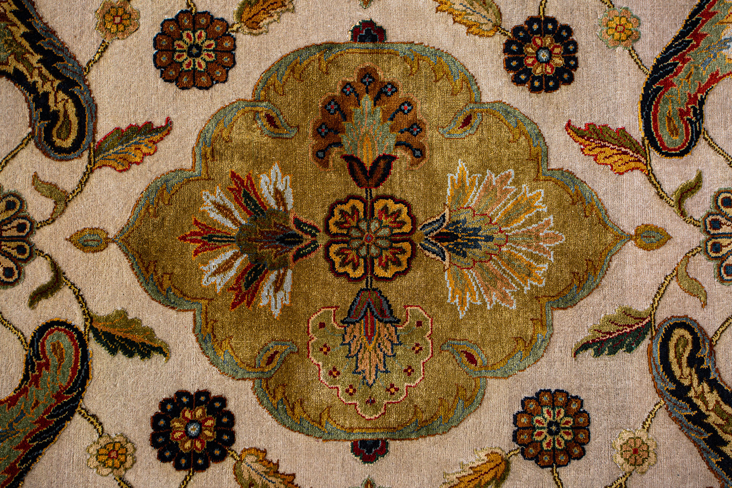 Более пяти веков назад в городе Агра зародилась знаменитая индийская школа ковроткачества, прославившаяся не меньше, чем расположенный здесь же Тадж-Махал. Мощное персидское влияние, помноженное на местный колорит, привело к появлению оригинальных орнаментов с богатыми растительными узорами — причудливым цветам, ветвям и листьям, разбросанным по всему полю ковра.