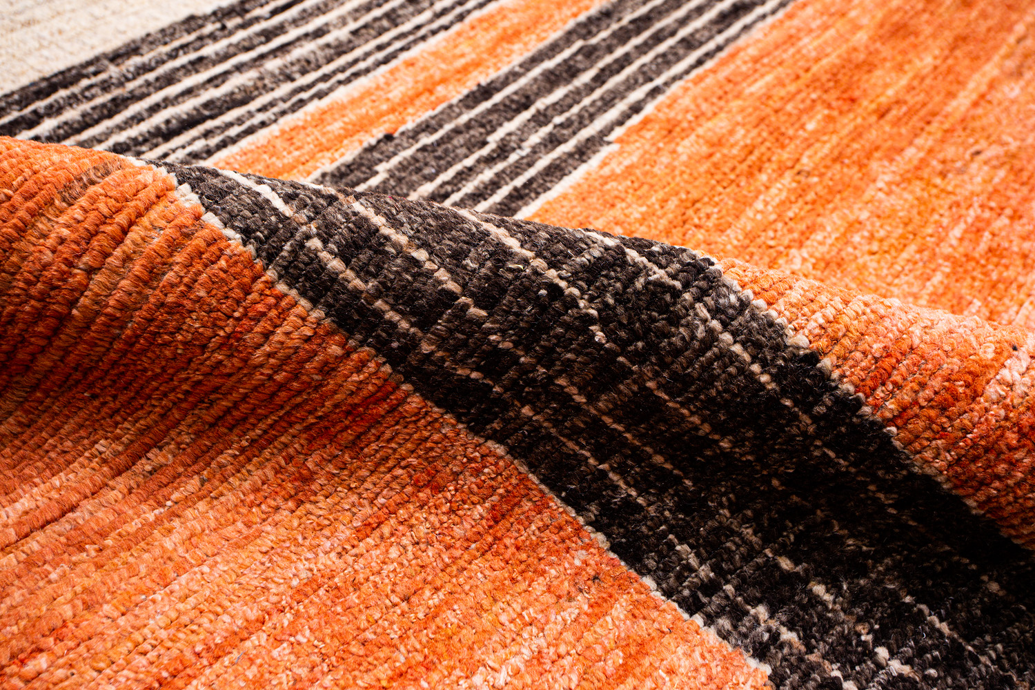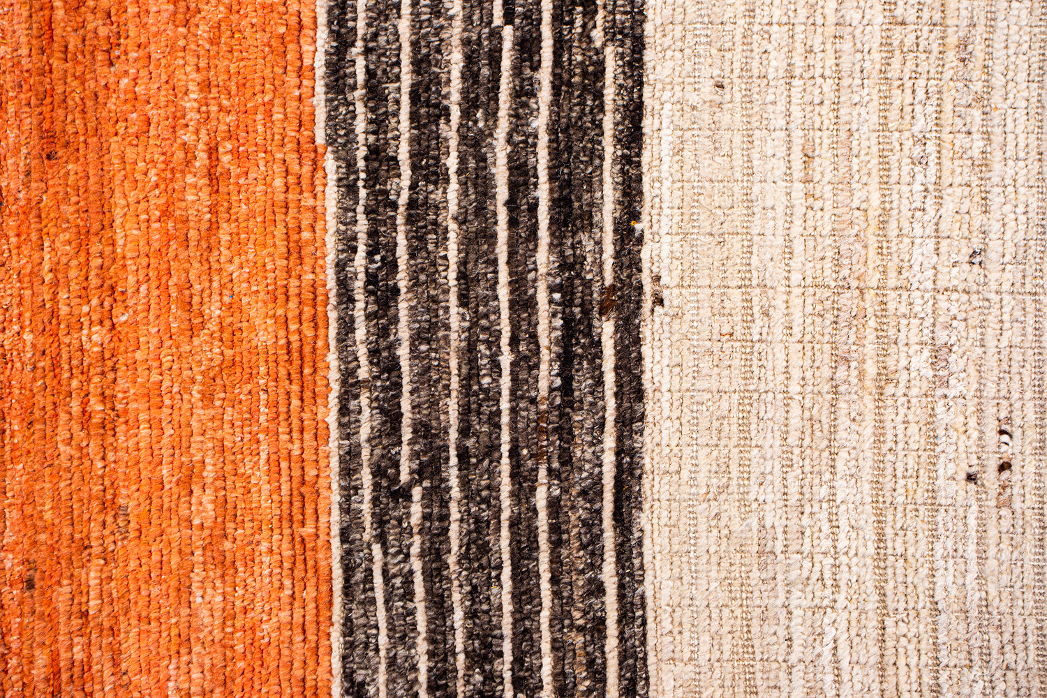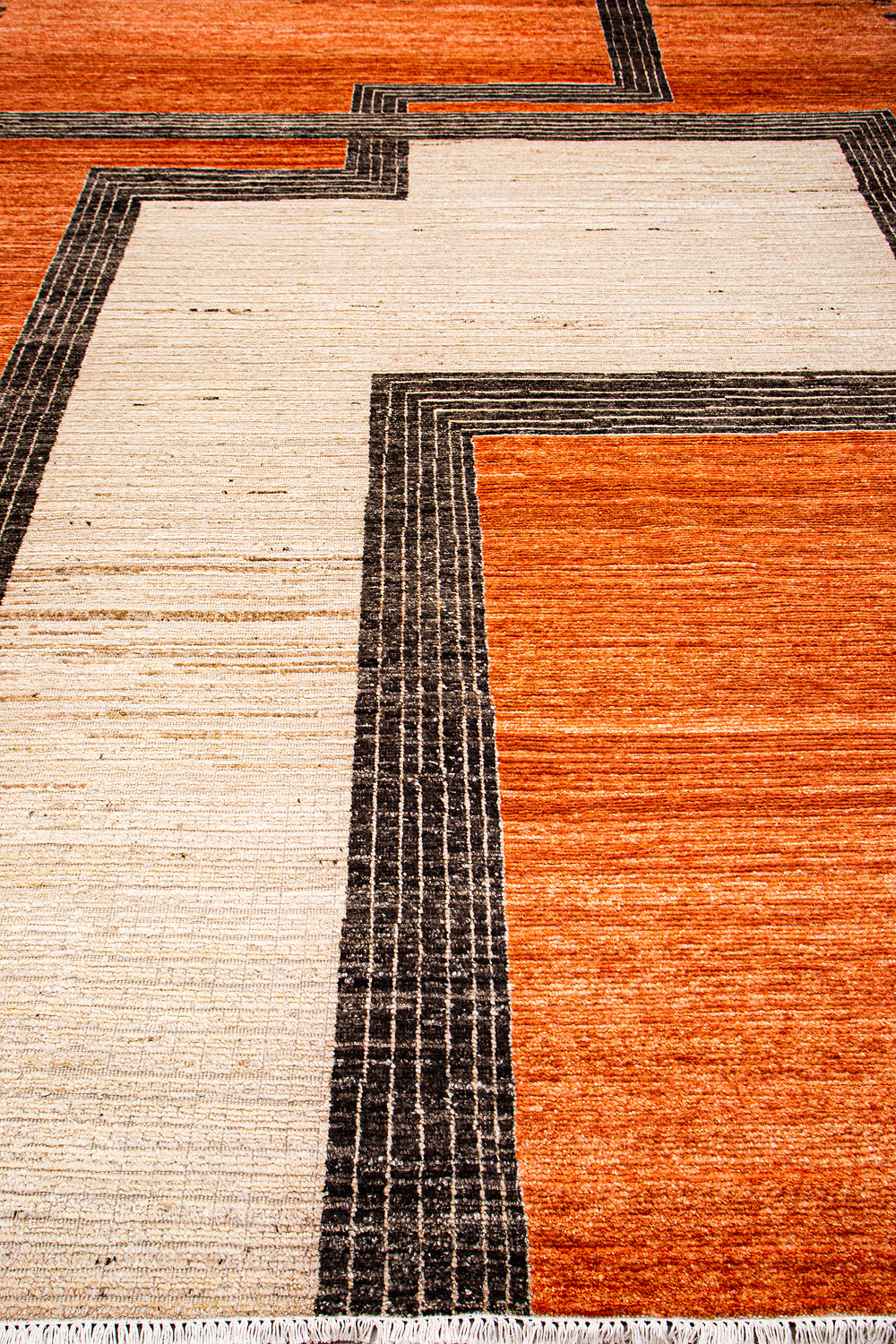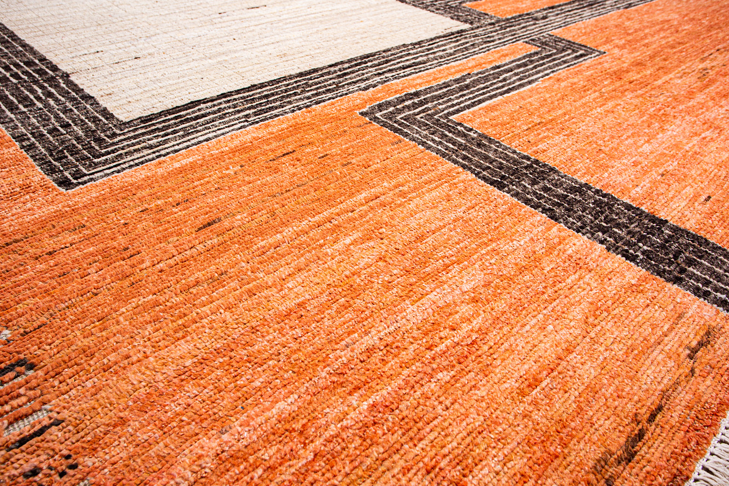Крупные рисунки в виде линий и фигур на фактурной поверхности ковра превращаются в выразительные композиции. Они акцентируют на себе внимание и добавляют динамики в современный интерьер. Комбинации разных фигур и повторяющийся орнамент задают ритмическую основу пространству, привносят в него оригинальные оптические иллюзии.