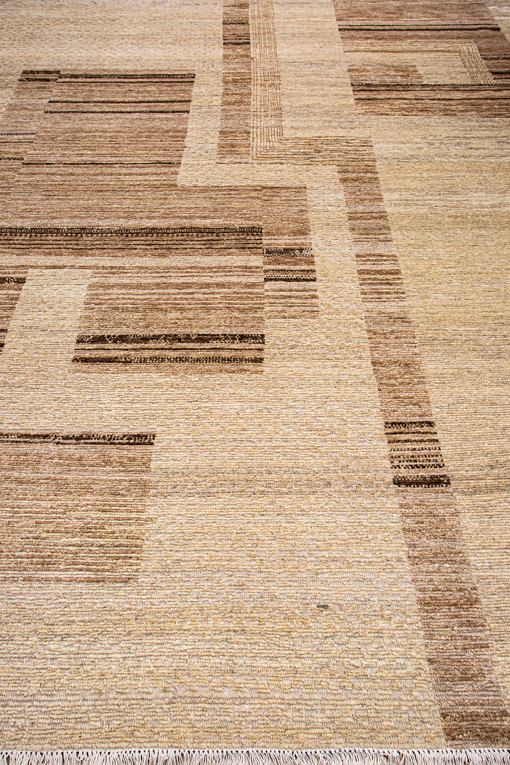 Крупные рисунки в виде линий и фигур на фактурной поверхности ковра превращаются в выразительные композиции. Они акцентируют на себе внимание и добавляют динамики в современный интерьер. Комбинации разных фигур и повторяющийся орнамент задают ритмическую основу пространству, привносят в него оригинальные оптические иллюзии.