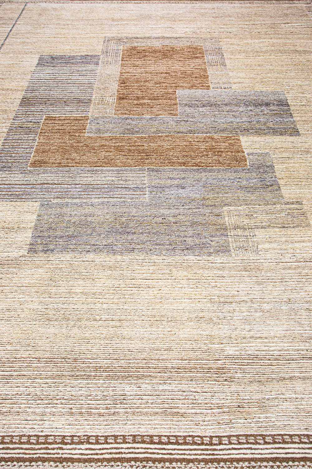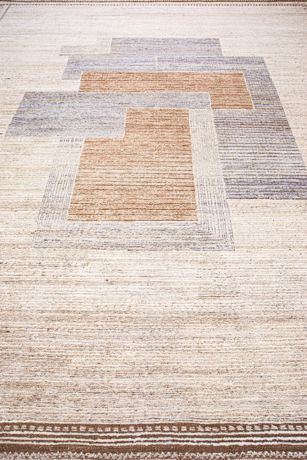 Крупные рисунки в виде линий и фигур на фактурной поверхности ковра превращаются в выразительные композиции. Они акцентируют на себе внимание и добавляют динамики в современный интерьер. Комбинации разных фигур и повторяющийся орнамент задают ритмическую основу пространству, привносят в него оригинальные оптические иллюзии.