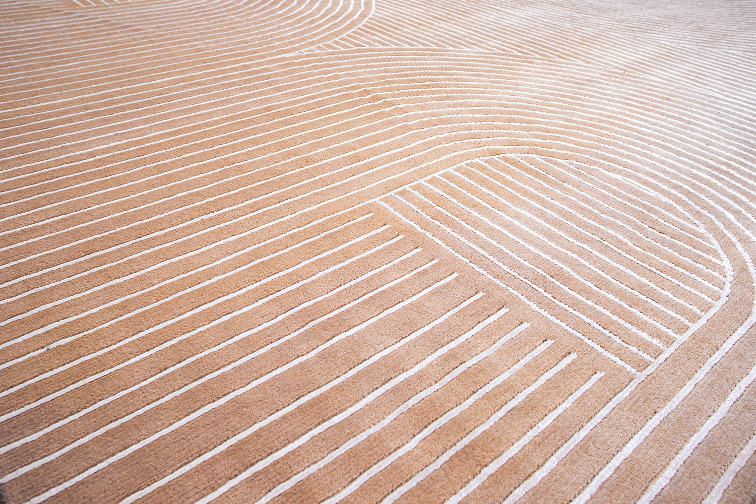 Крупные рисунки в виде линий и фигур на фактурной поверхности ковра превращаются в выразительные композиции. Они акцентируют на себе внимание и добавляют динамики в современный интерьер. Комбинации разных фигур и повторяющийся орнамент задают ритмическую основу пространству, привносят в него оригинальные оптические иллюзии.