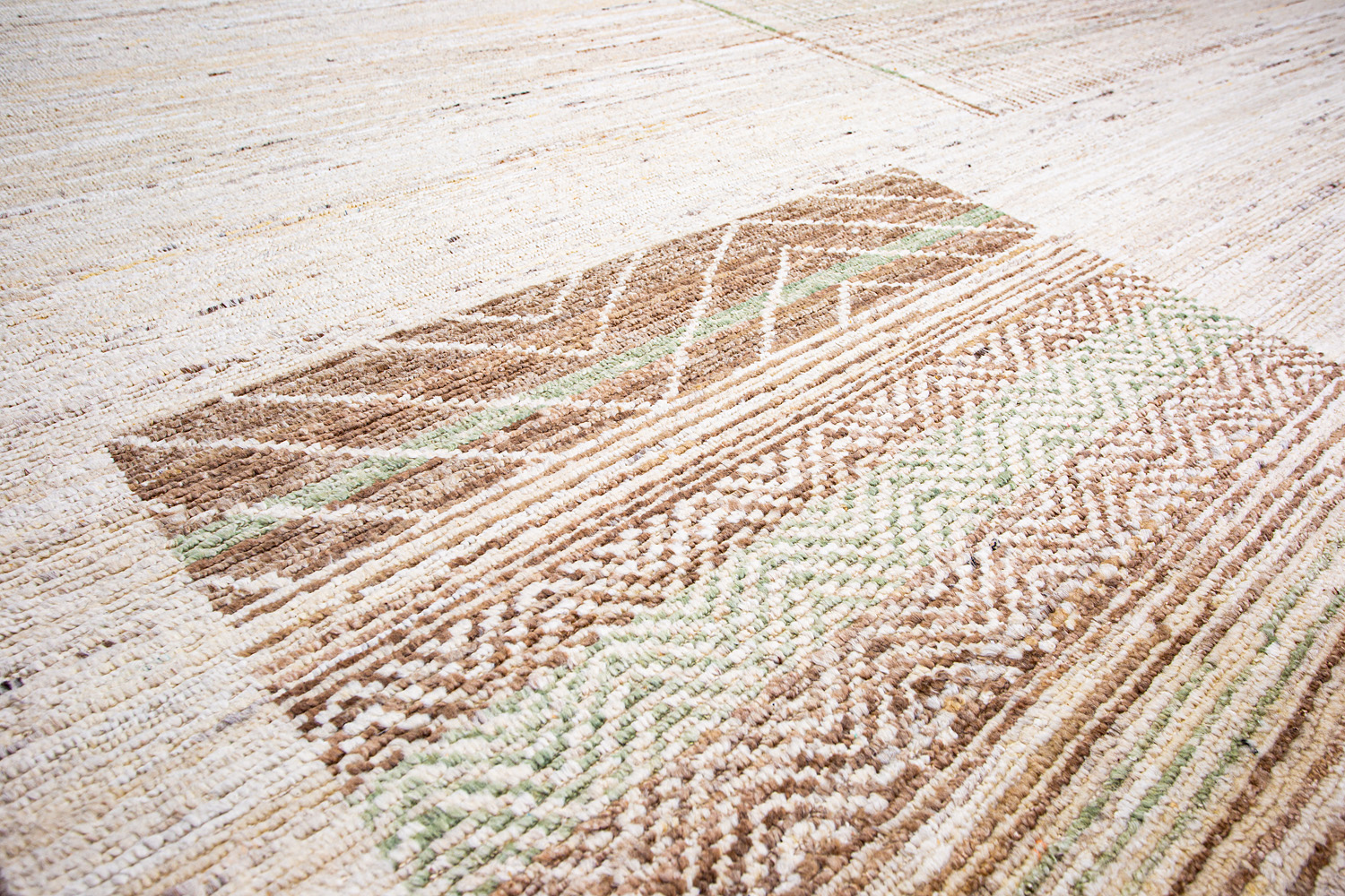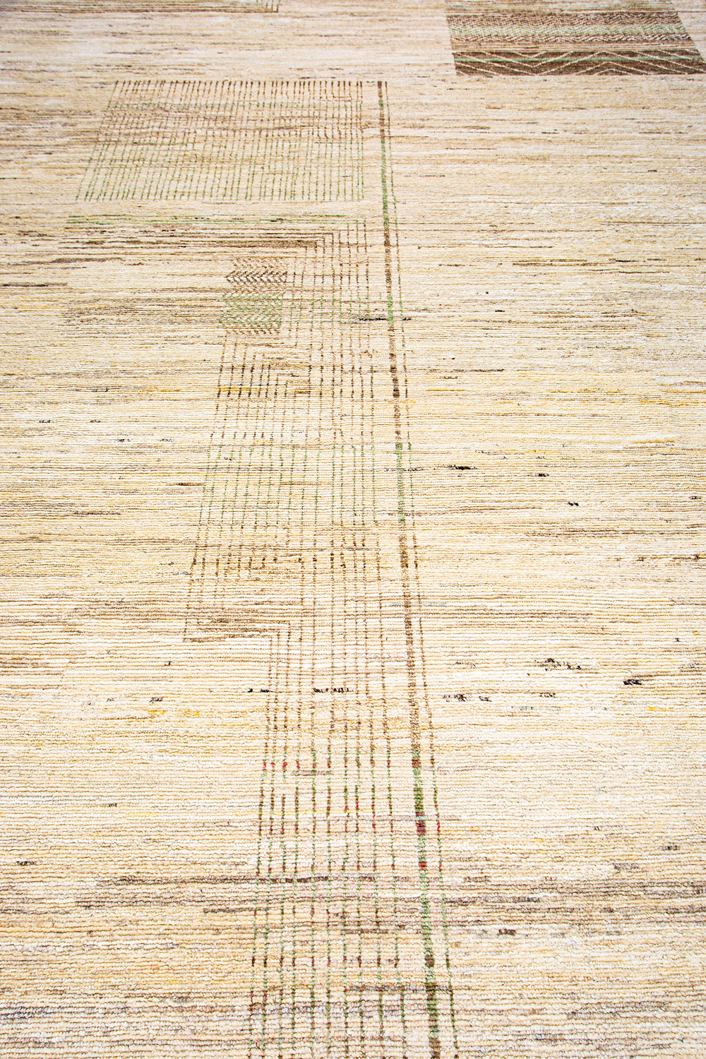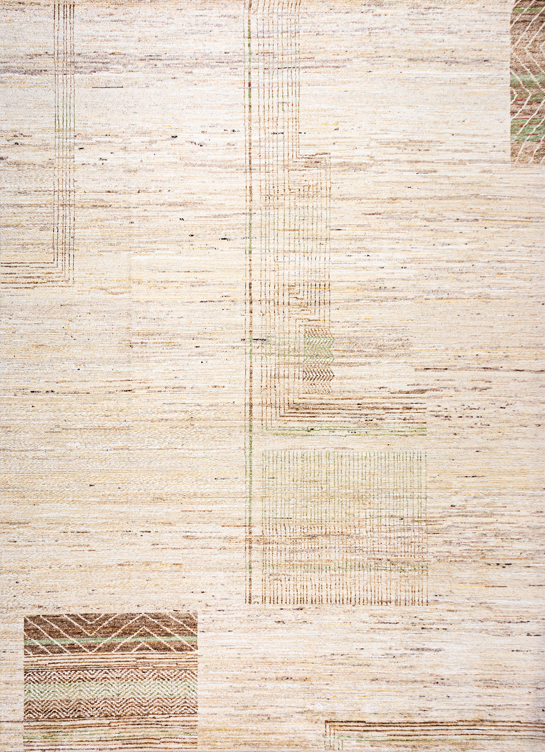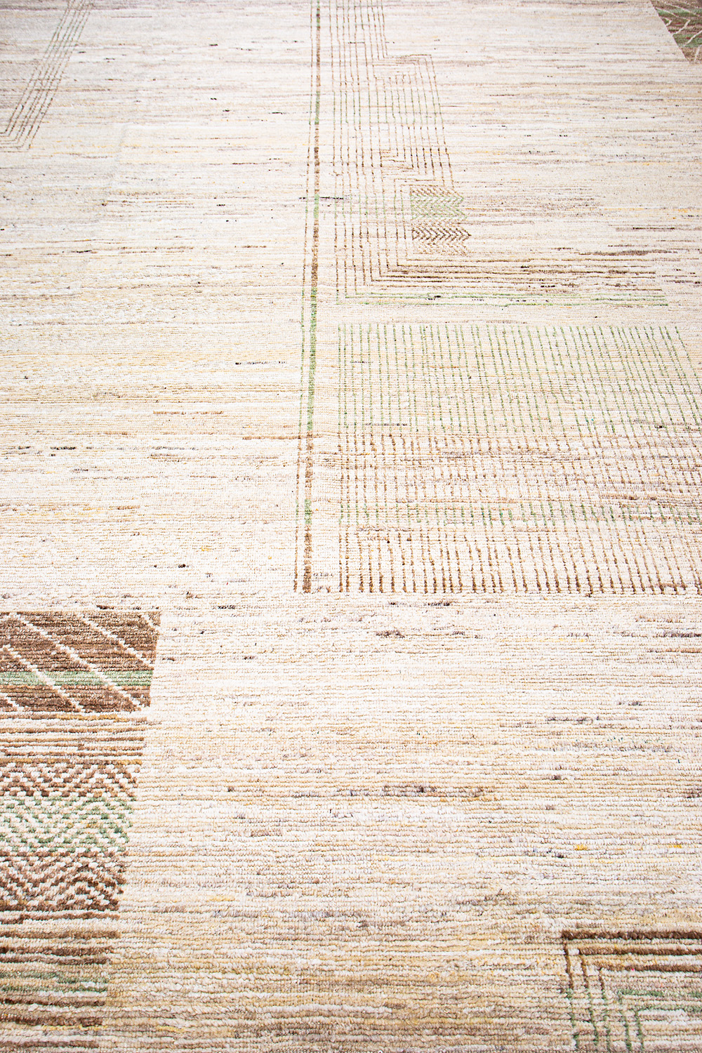 Крупные рисунки в виде линий и фигур на фактурной поверхности ковра превращаются в выразительные композиции. Они акцентируют на себе внимание и добавляют динамики в современный интерьер. Комбинации разных фигур и повторяющийся орнамент задают ритмическую основу пространству, привносят в него оригинальные оптические иллюзии.