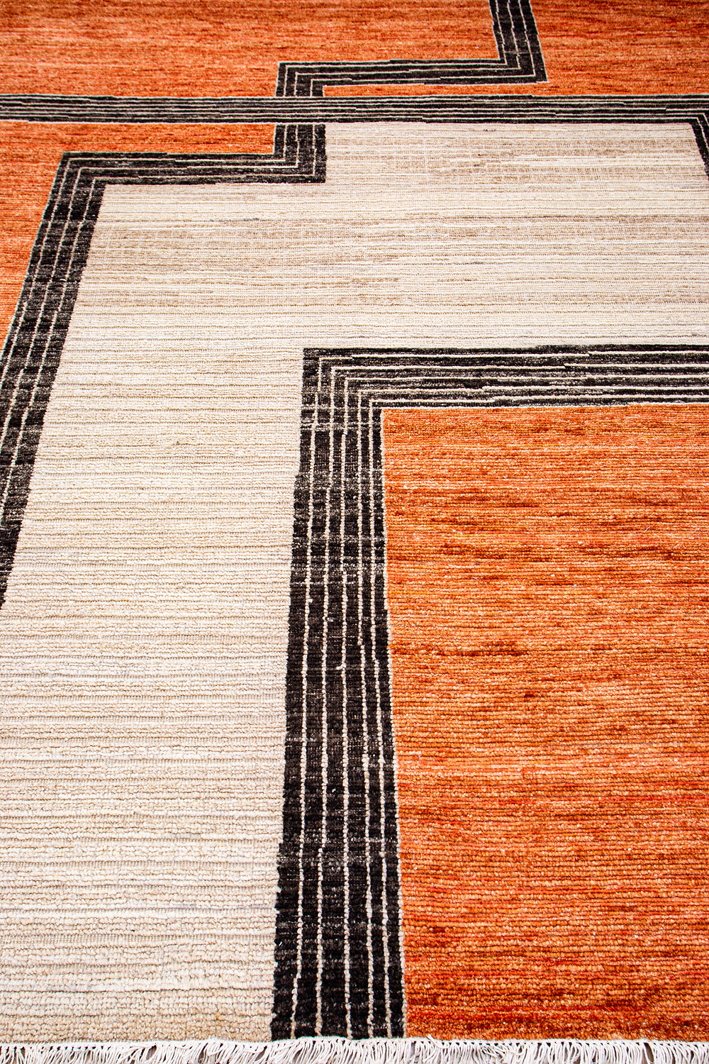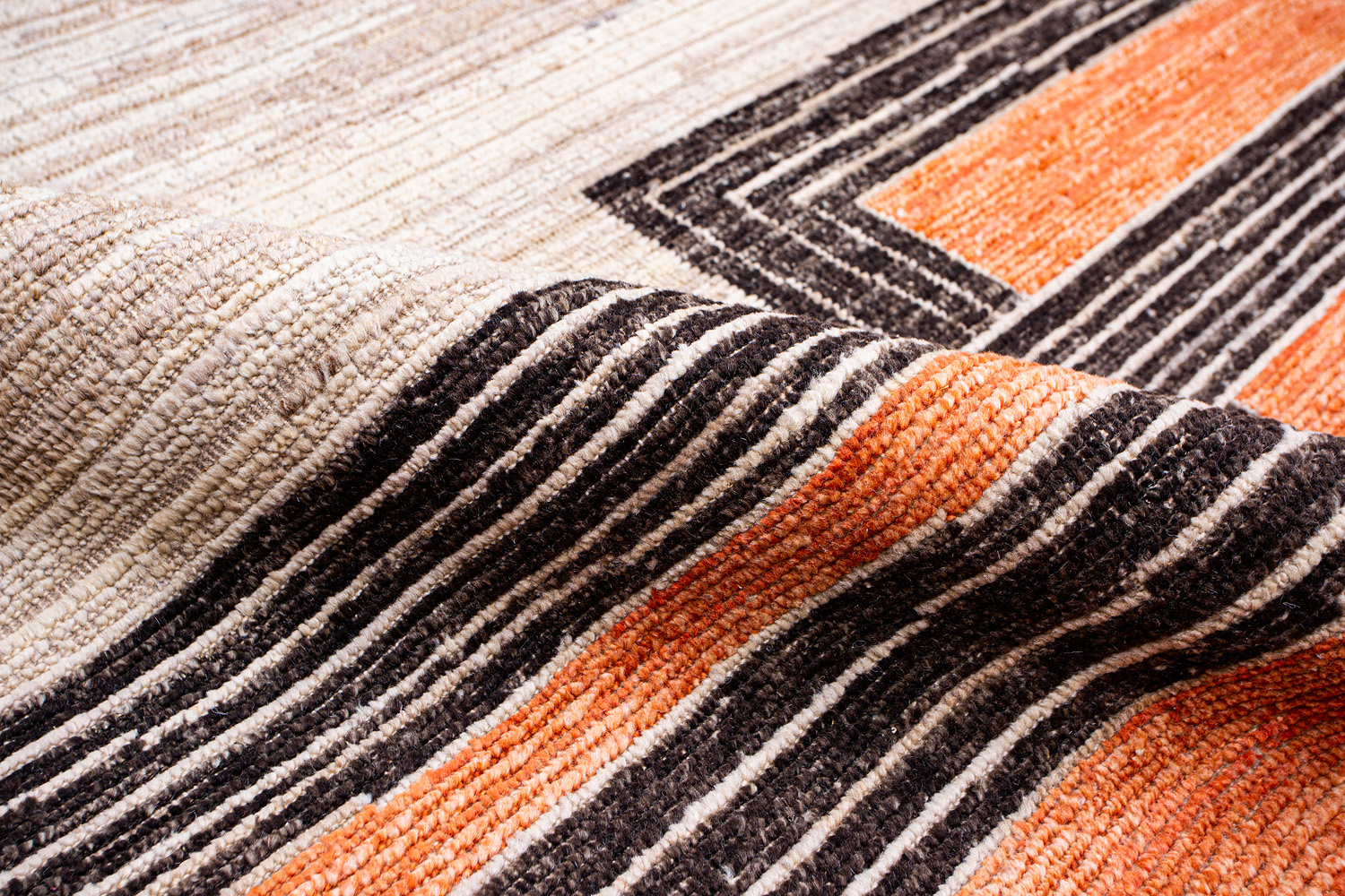 Крупные рисунки в виде линий и фигур на фактурной поверхности ковра превращаются в выразительные композиции. Они акцентируют на себе внимание и добавляют динамики в современный интерьер. Комбинации разных фигур и повторяющийся орнамент задают ритмическую основу пространству, привносят в него оригинальные оптические иллюзии.