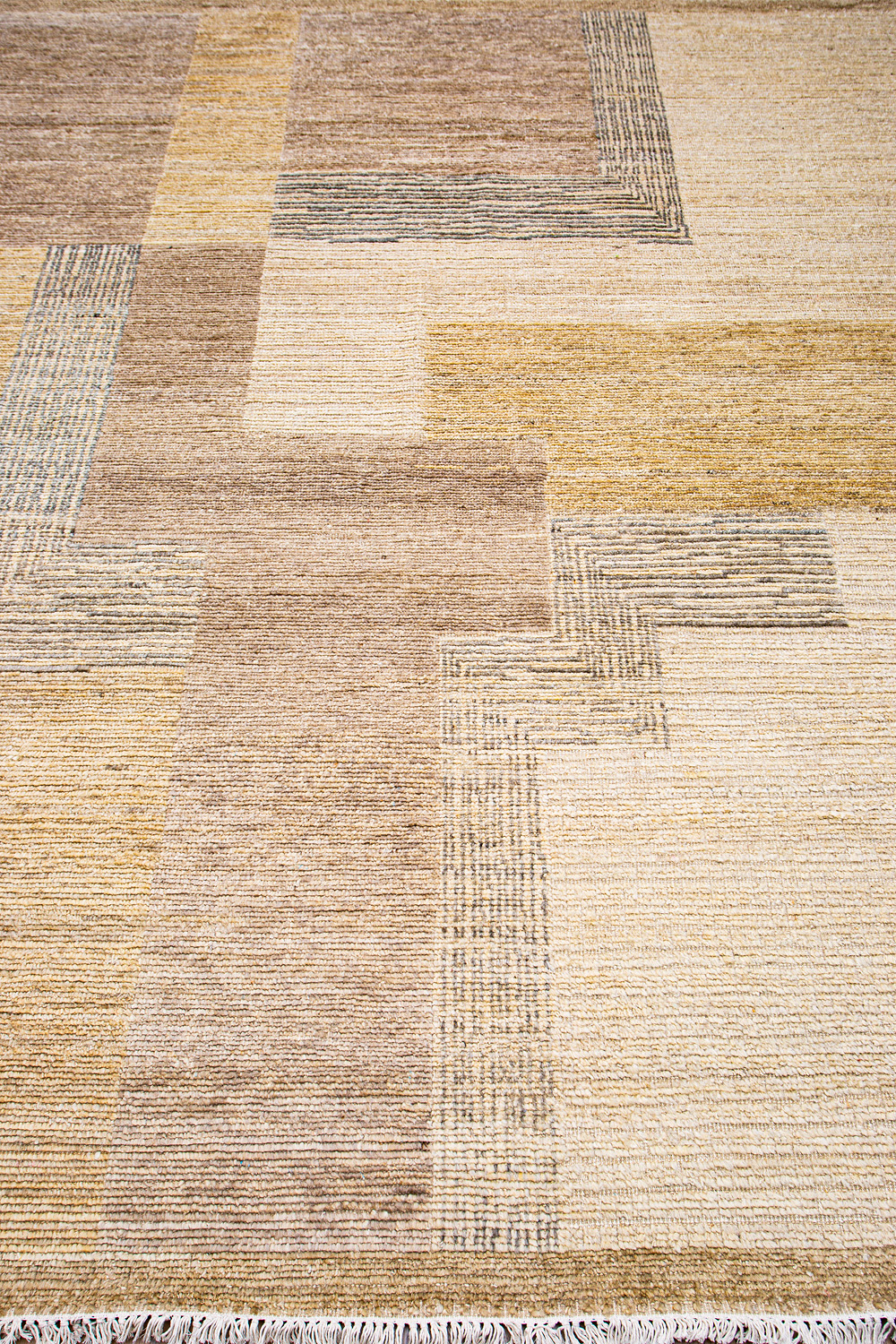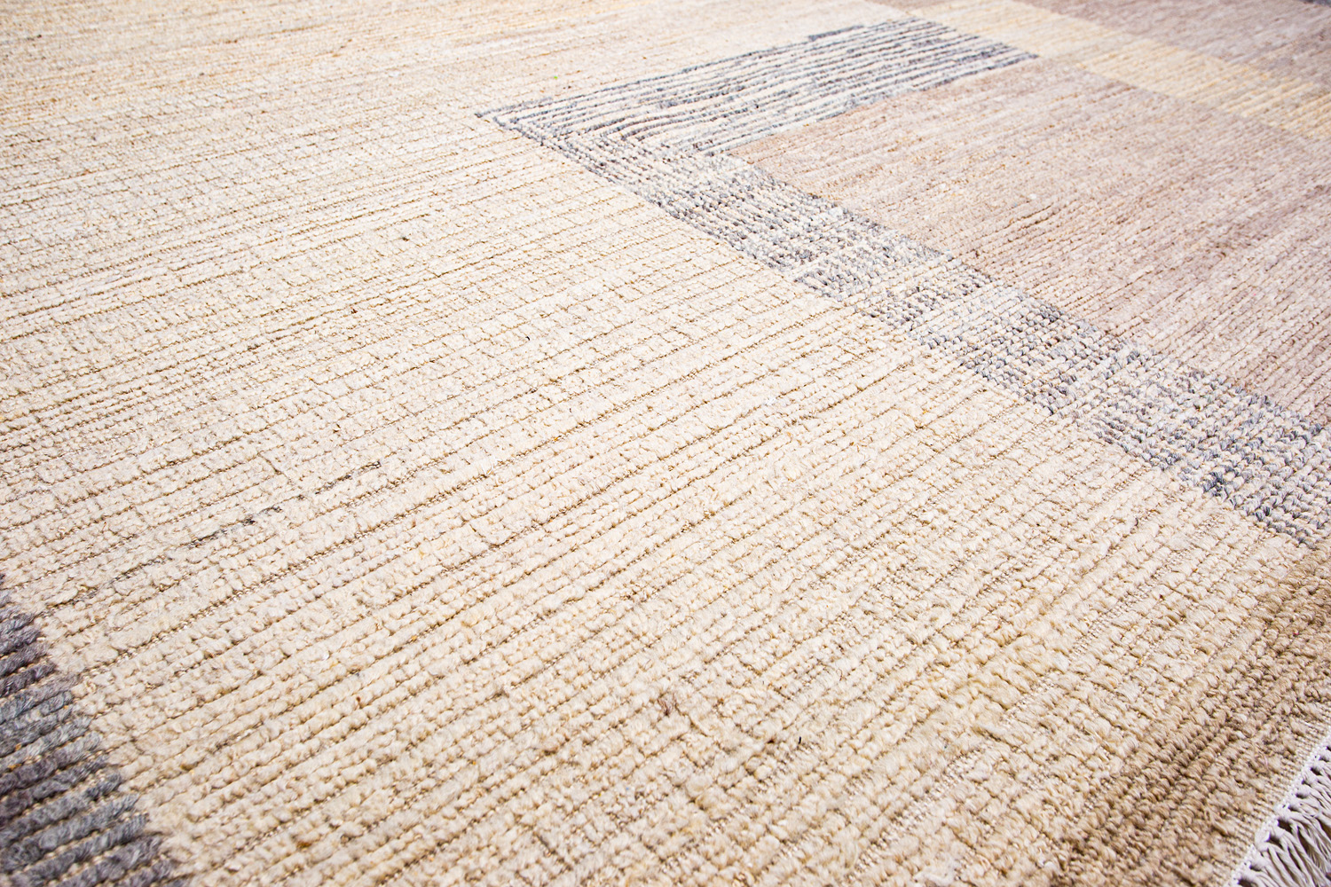 Крупные рисунки в виде линий и фигур на фактурной поверхности ковра превращаются в выразительные композиции. Они акцентируют на себе внимание и добавляют динамики в современный интерьер. Комбинации разных фигур и повторяющийся орнамент задают ритмическую основу пространству, привносят в него оригинальные оптические иллюзии.