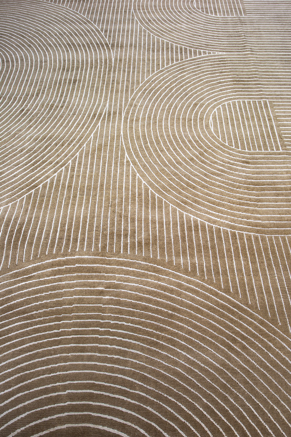 Крупные рисунки в виде линий и фигур на фактурной поверхности ковра превращаются в выразительные композиции. Они акцентируют на себе внимание и добавляют динамики в современный интерьер. Комбинации разных фигур и повторяющийся орнамент задают ритмическую основу пространству, привносят в него оригинальные оптические иллюзии.
