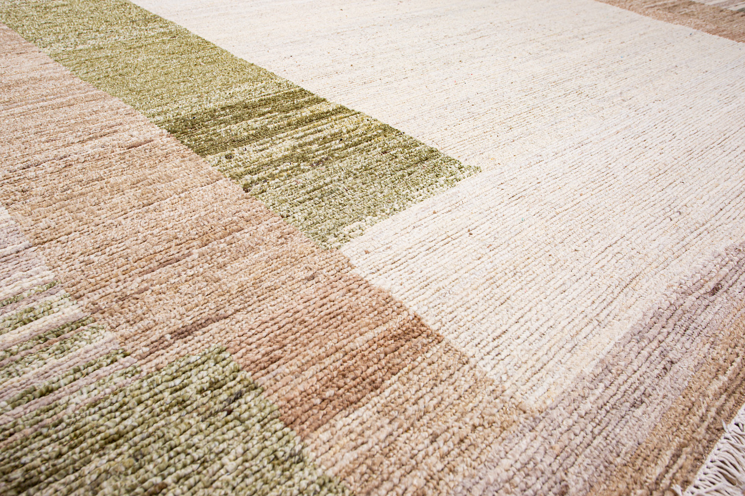 Крупные рисунки в виде линий и фигур на фактурной поверхности ковра превращаются в выразительные композиции. Они акцентируют на себе внимание и добавляют динамики в современный интерьер. Комбинации разных фигур и повторяющийся орнамент задают ритмическую основу пространству, привносят в него оригинальные оптические иллюзии.