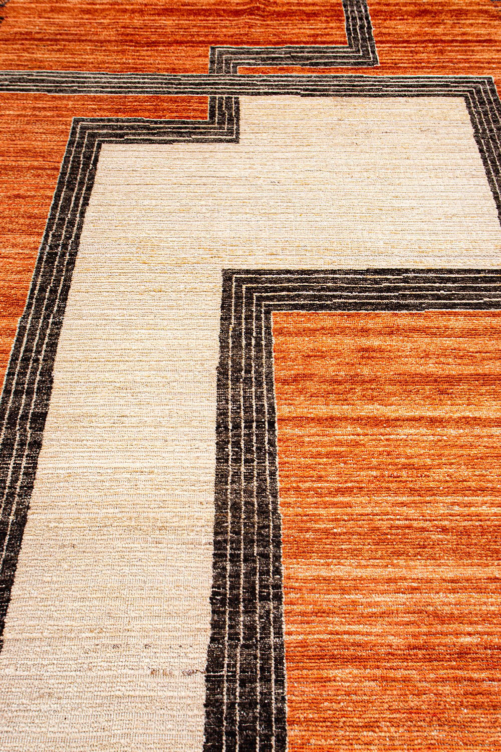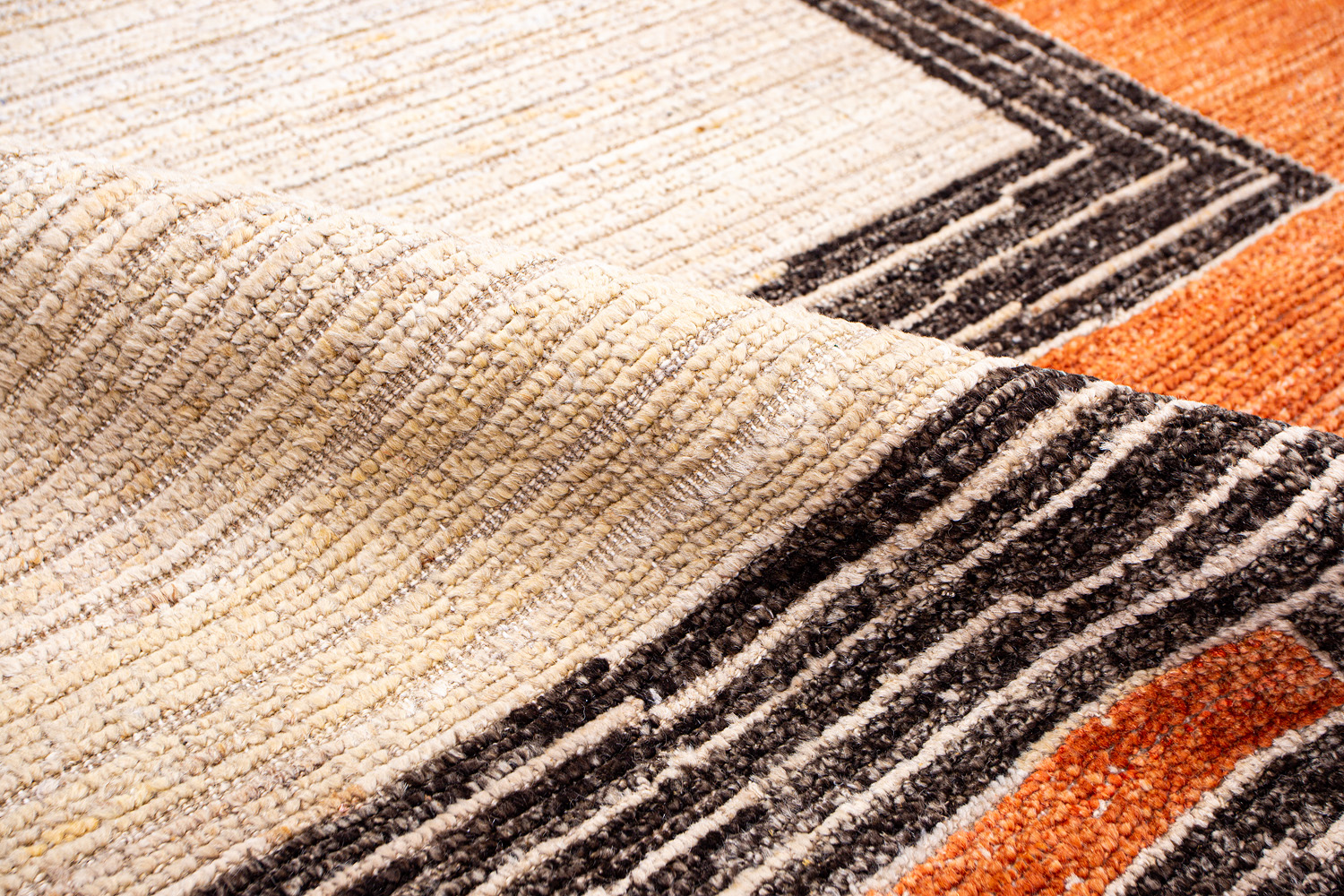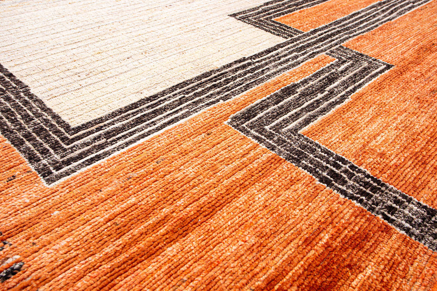 Крупные рисунки в виде линий и фигур на фактурной поверхности ковра превращаются в выразительные композиции. Они акцентируют на себе внимание и добавляют динамики в современный интерьер. Комбинации разных фигур и повторяющийся орнамент задают ритмическую основу пространству, привносят в него оригинальные оптические иллюзии.