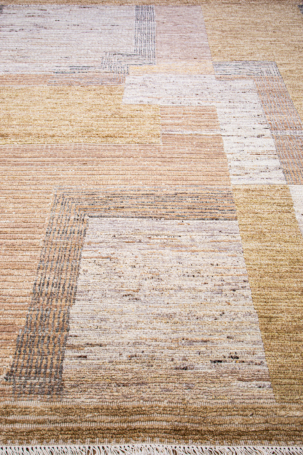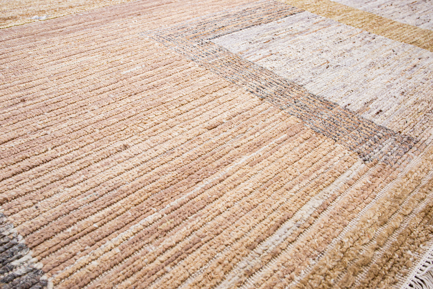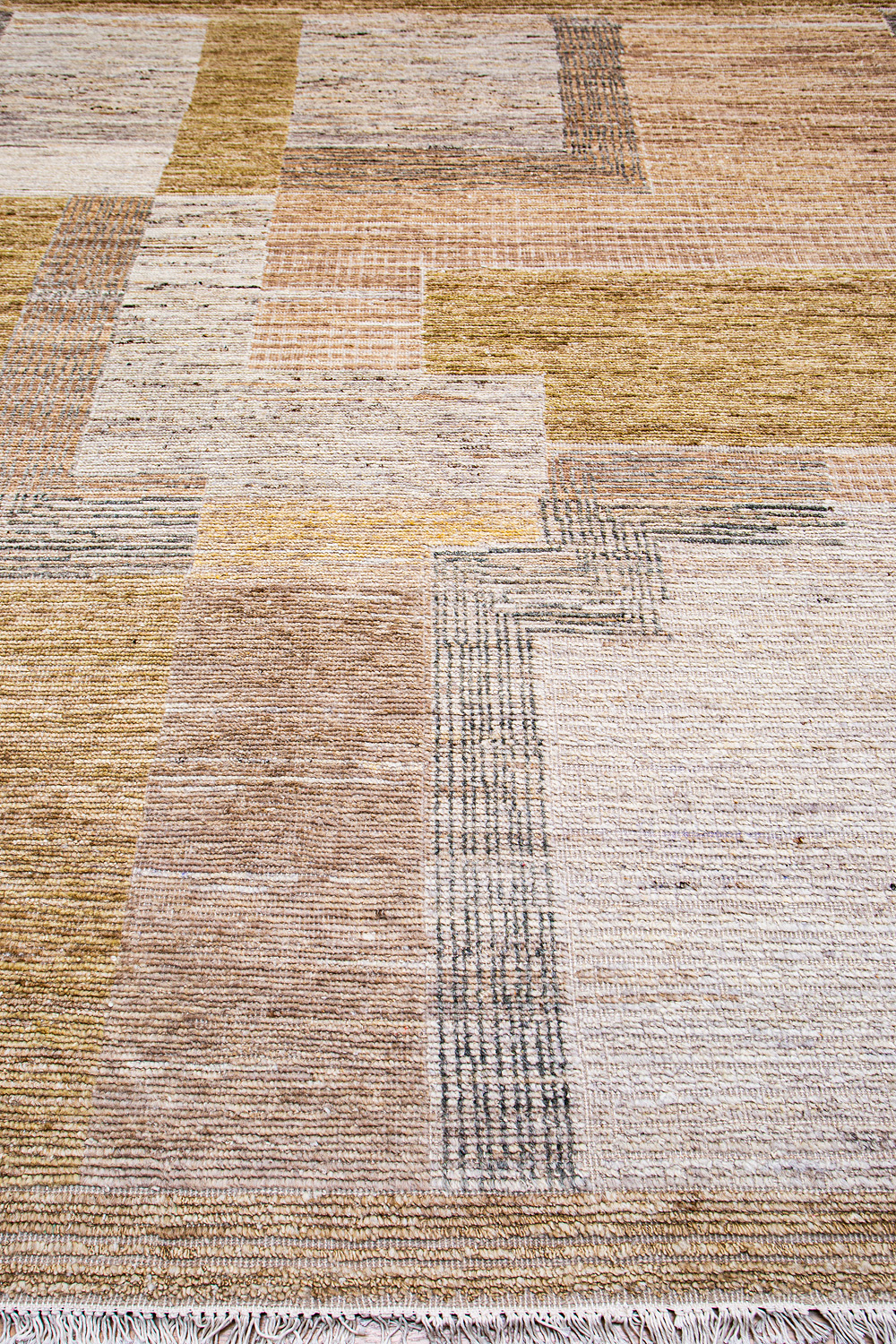 Крупные рисунки в виде линий и фигур на фактурной поверхности ковра превращаются в выразительные композиции. Они акцентируют на себе внимание и добавляют динамики в современный интерьер. Комбинации разных фигур и повторяющийся орнамент задают ритмическую основу пространству, привносят в него оригинальные оптические иллюзии.